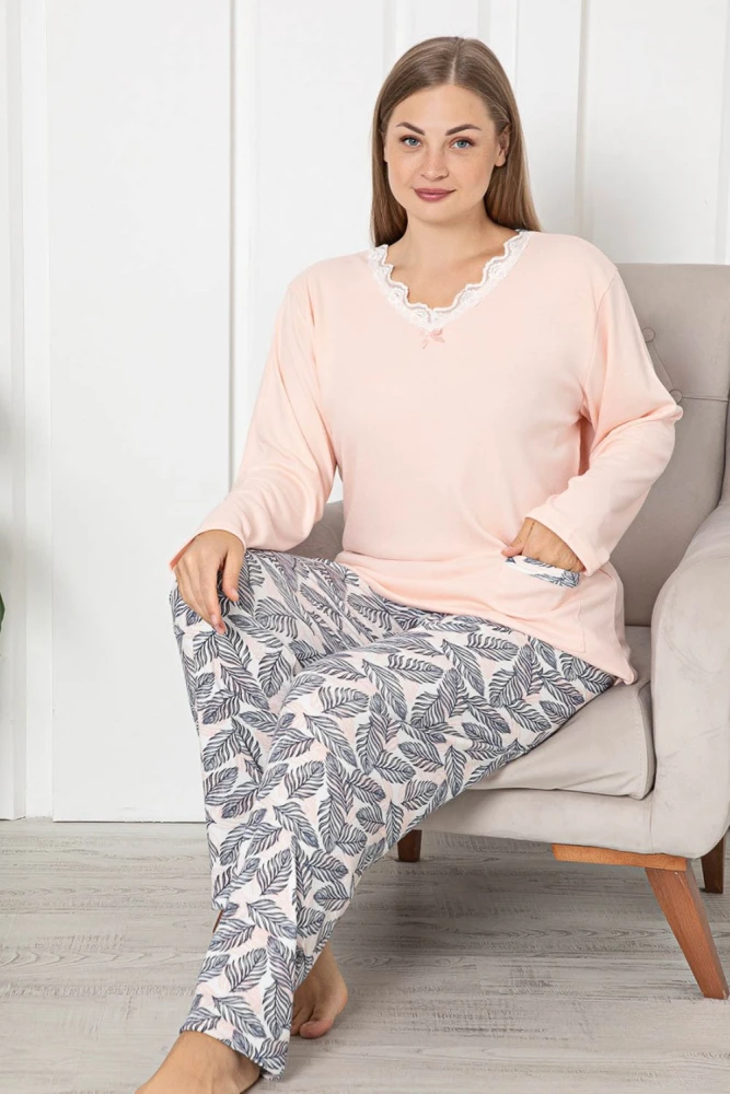 Pijama Dama PJ2032 Roz-Alb | Pamuklu