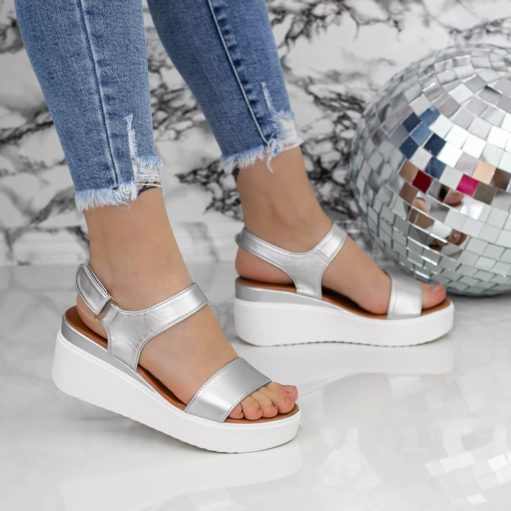 Sandale Dama cu Platforma PT27 Argintiu Mei