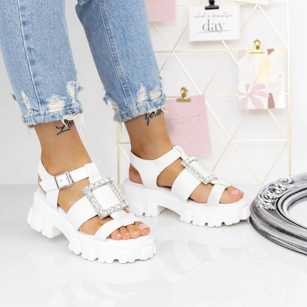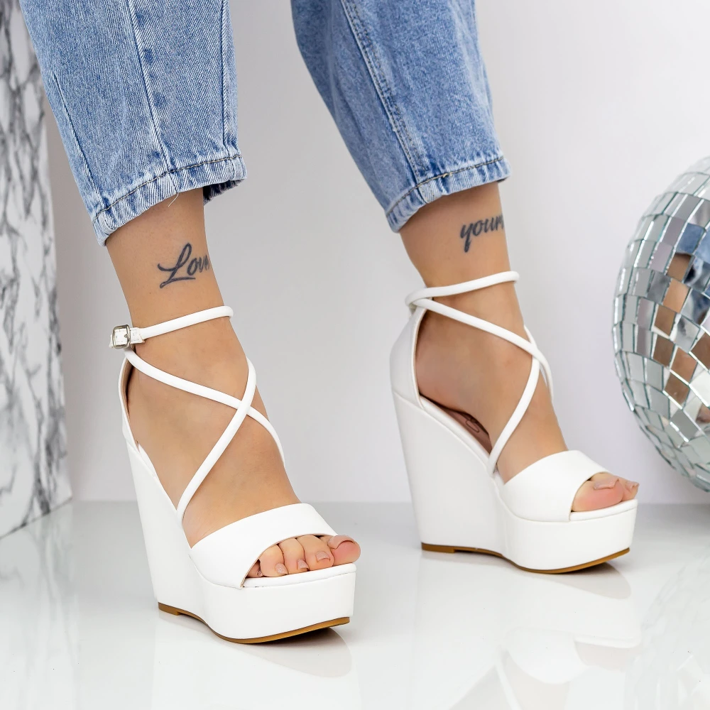 Sandale cu Platforma 3WL129 Alb | Mei