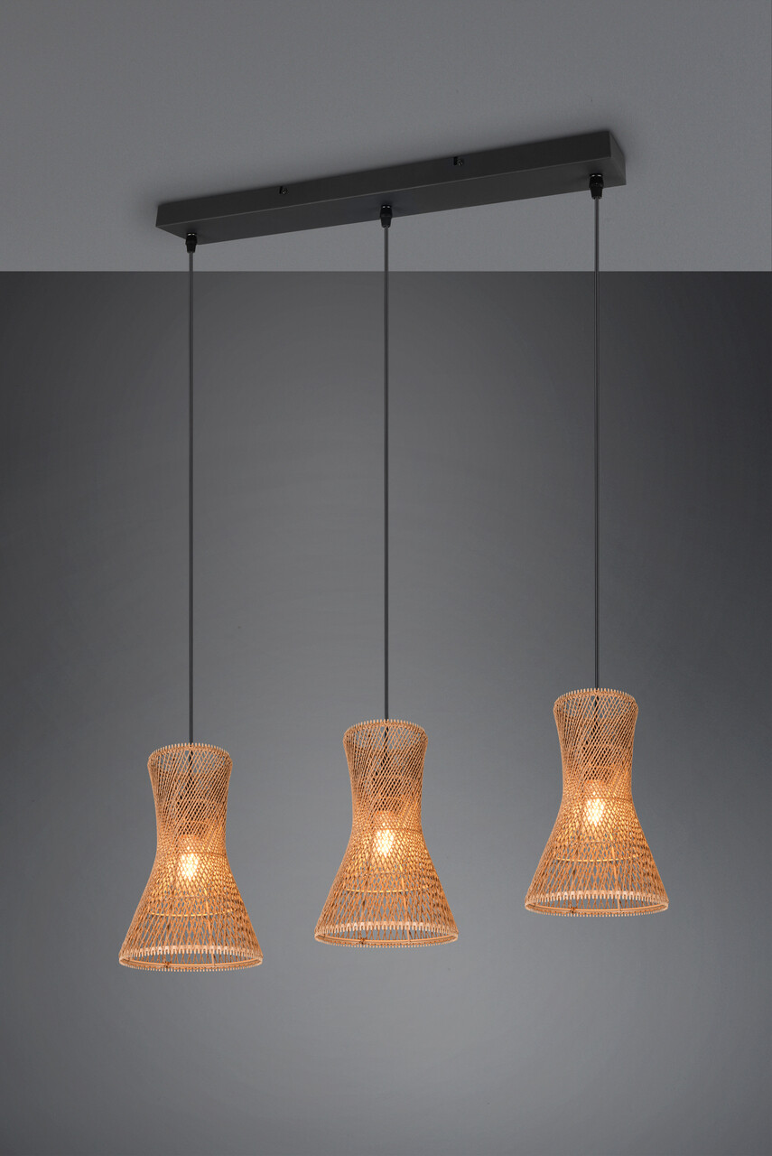 Lustra Bijou, RL, 75x20x150 cm, 10W, 3x E27, hartie, negru mat/maro