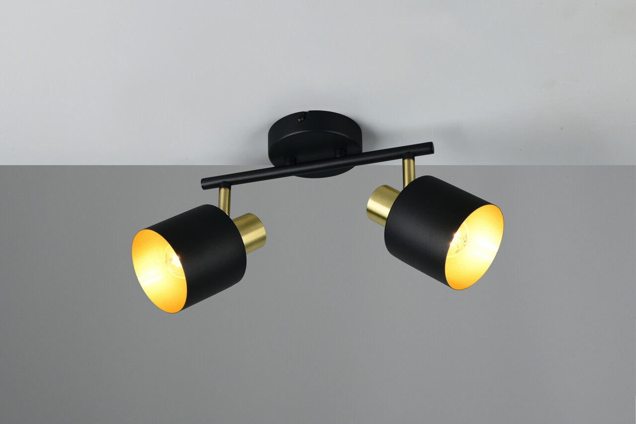 Plafoniera Eva, TRIO, 36.5x10x19 cm, 10W, 2x E14, metal, negru/auriu