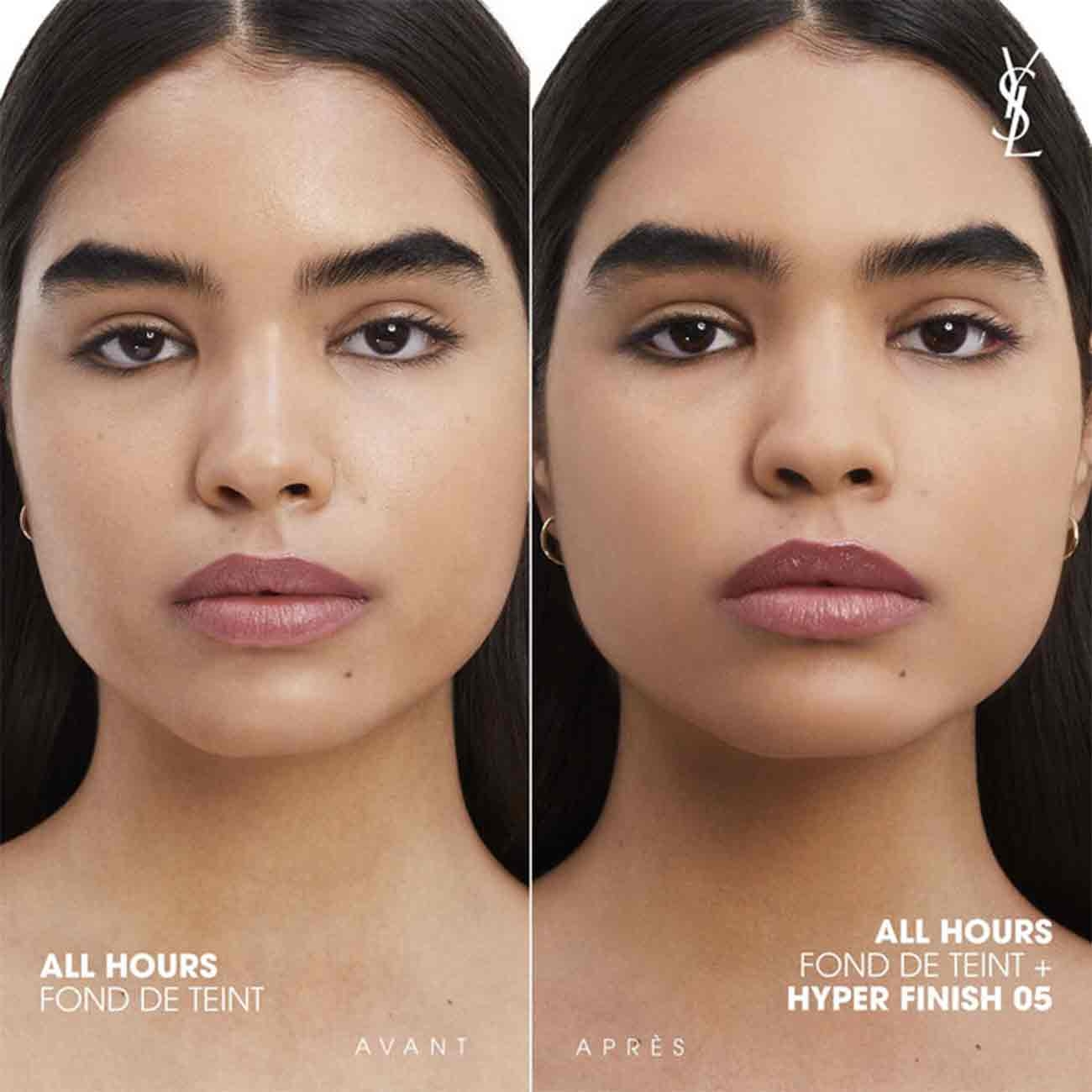 Yves Saint Laurent este o casă de modă de lux, fondată în Franța. Unicitatea și creativitatea acesteia s-au răspândit și în domeniul cosmeticelor și parfumeriei. All Hours Hyper Finish Powder, noua pudră matifiantă multi-funcțională de tip couture – matifiază și fixează tenul timp de 24H. Îmbogățită cu ingrediente active de îngrijire a pielii și infuzată cu 90% ingrediente de origine naturală, aceasta estompează imperfecțiunile și minimizează aspectul porilor, uniformizând pielea. Machiajul este fixat și culoarea rămâne autentică, fără senzația de greutate sau aspect de încărcare. Disponibilă în 11 nuanțe adaptabile tenului.