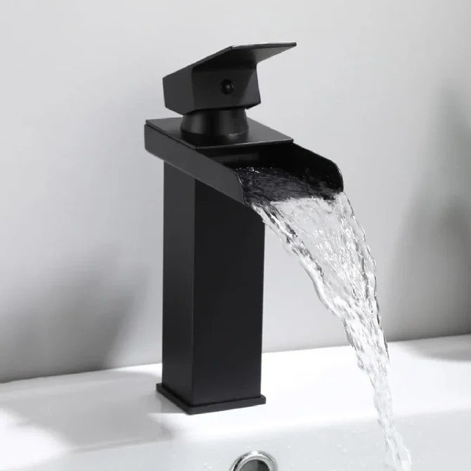 Baterie moderna cu iesire tip cascada, design elegant si functie dubla apa calda/rece. Ideala pentru bai contemporane sau spatii comerciale. Fabricata din alama de inalta calitate, cu finisaj negru mat rezistent si cartus ceramic durabil. Caracteristici cheie: Design: Cascada, finisaj negru “pian” Material: Alama A59 rezistenta la coroziune Control: Monocomanda apa calda/rece Economisire apa: Pana la 30% mai eficienta Racorduri: Standard 3/8, montaj usor