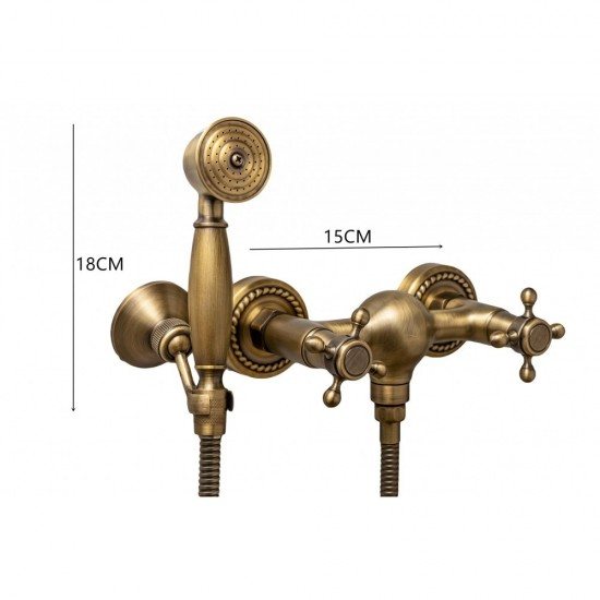 Bateria este construita integral din alama sanitara , cu aspect antichizat . Cartusul ceramic , asigurand o folosinta indelungata, prelungind durata de viata a bateriei. Bateria este monocomanda , maneta de actionare este amplasata in partea superioara a bateriei , asigurand o reglarea facila si exacata a temeperaturi si a debitului apei. Pachetul contine : -bateria -furtun de dus 1.5 m cu aspect antichizat din metal -para de dus din alama cu aspect antichizat Garantie: 2 ani pentru p