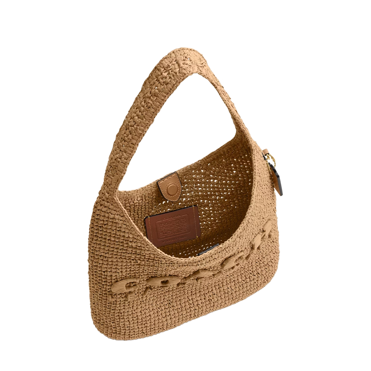 Coach New York, cunoscut în mod obișnuit ca și Coach, este o casă de modă de lux americană specializată în produse din piele - genți, încălțăminte și accesorii, precum și îmbrăcăminte, fiind înființată în 1941 ca un atelier de familie într-un loft de pe strada 34 din Manhattan, cu șase lucrători de pielărie care confecționau portofele manual. Geanta Brooklyn este un shopper modern realizat din paie de hârtie cu detalii din piele, combinând eleganța naturală cu accente premium. Se închide practic cu o capsă magnetică, iar mânerele lungi oferă confort la purtare pe umăr. Ideală pentru zilele active sau escapade urbane, adaugă un aer lejer, sofisticat fiecărei ținute.