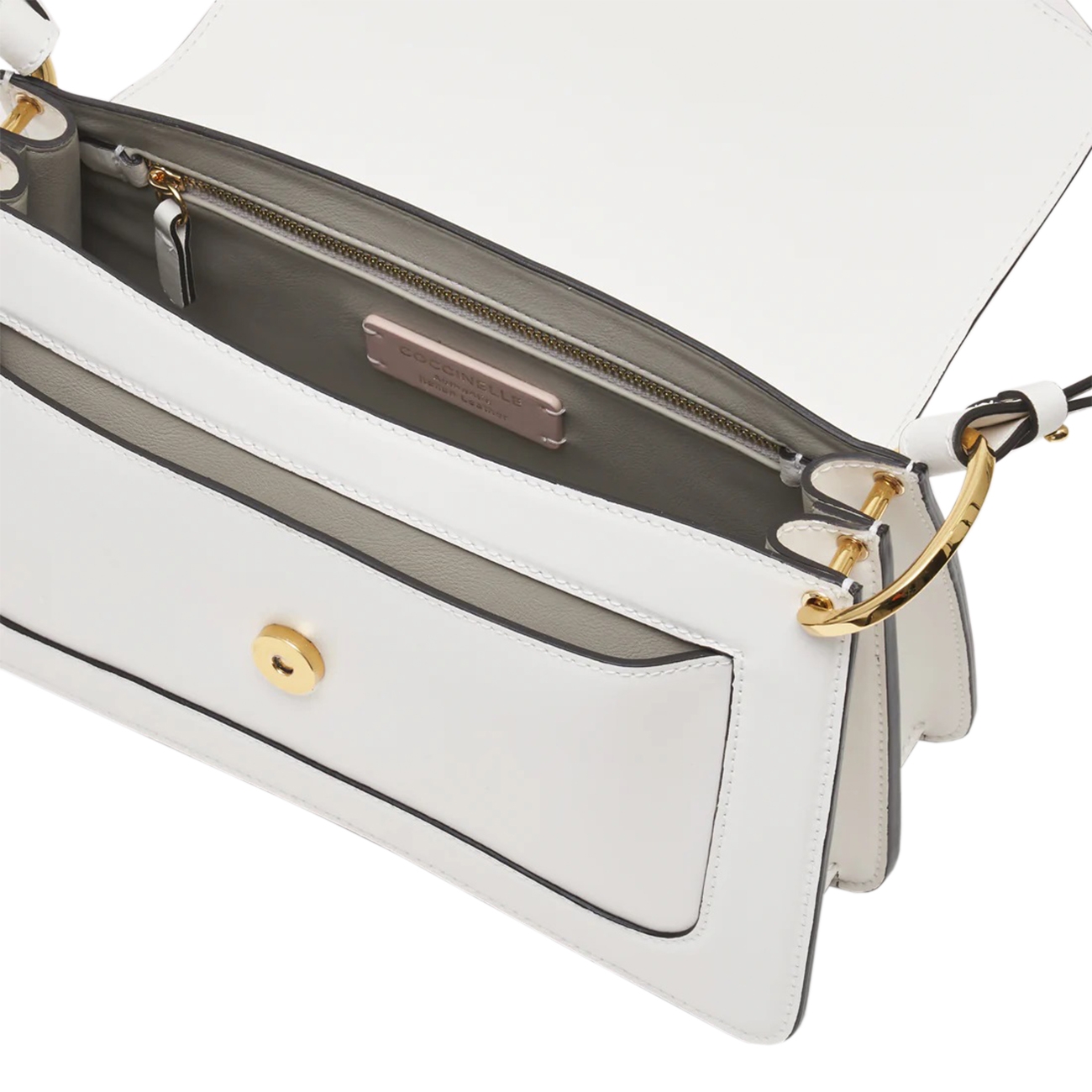 Coccinelle este un brand italienesc, originar din Parma, ce creează accesorii pentru viața de zi cu zi a femeilor din întreaga lume. Brandul are un stil contemporan și se mândrește cu produse calitative, lucrate cu cea mai mare atenție la detalii. C-Me Handbag este un model elegant și modern, creat din piele netedă de calitate superioară, care îmbină perfect funcționalitatea și stilul. Logo-ul este reinventat cu litera C din Coccinelle, care se înfășoară și îmbrățișează plectrul – un element iconic al brandului, simbolizând legătura între trecutul și prezentul unei femei. Designul se remarcă prin linii geometrice și curbe elegante, iar construcția cu balene adaugă un echilibru între funcționalitate și subtilitate.