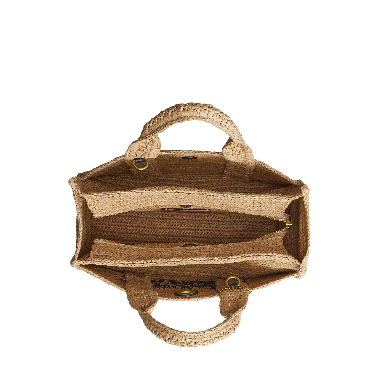 Coach New York, cunoscut în mod obișnuit ca și Coach, este o casă de modă de lux americană specializată în produse din piele - genți, încălțăminte și accesorii, precum și îmbrăcăminte, fiind înființată în 1941 ca un atelier de familie într-un loft de pe strada 34 din Manhattan, cu șase lucrători de pielărie care confecționau portofele manual. Perfectă pentru orice aventură, geanta Cargo Tote este ușoară, spațioasă și versatilă. Realizată din paie țesute cu o textură elegantă, are un interior deschis suficient de mare pentru un laptop de 13” și o bretea detașabilă din material textil pentru purtare pe umăr sau crossbody. Este accesorizată cu faimoasa închidere turnlock și finisată cu logo-ul Coach brodat direct în paie, pentru un look autentic și rafinat.