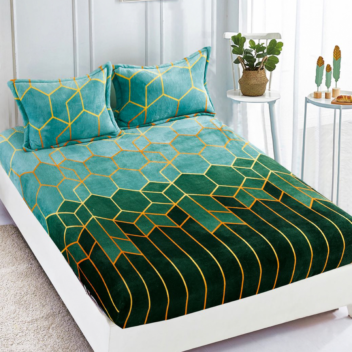 Cearsaf CoCoLiNo, JoJo Home, cu Elastic, 180x200x25cm, 2 fete de perne, 50x70cm, Verde, forme geometrice