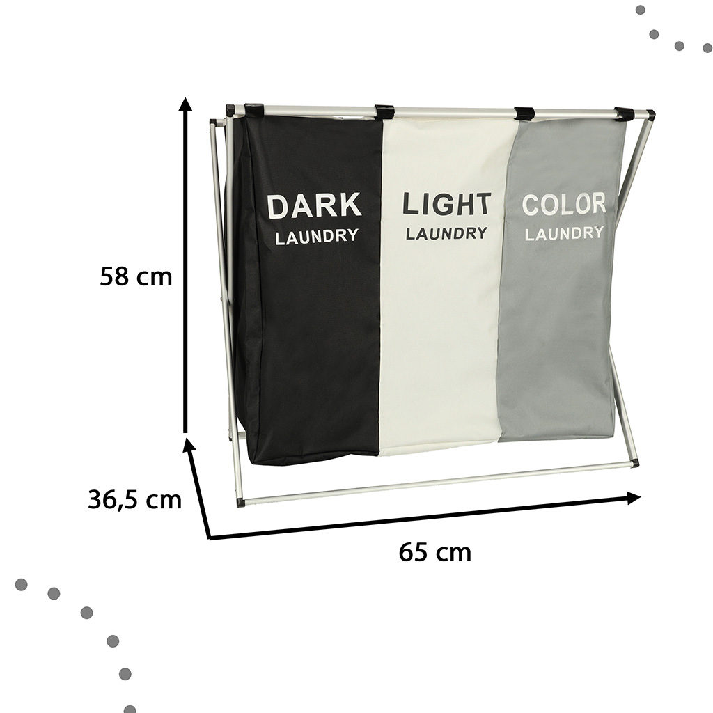 COS DE RUFE SEPARATOR DE SEPARARE A COSULUI DE RUFE 3 COMPARTIMENTE 135 L Pentru a alege cosul de rufe potrivit, trebuie sa va ganditi exact de ce aveti nevoie, cat de mare doriti sa fie si din ce material este confectionat cosul. Acest cos de rufe este perfect pentru cei care cauta un organizator de rufe mare, cu trei compartimente. Acesta dispune de trei cosuri separate intr-unul singur! Fiecare compartiment este semnat si conceput pentru un tip diferit de rufe - negre, albe si color