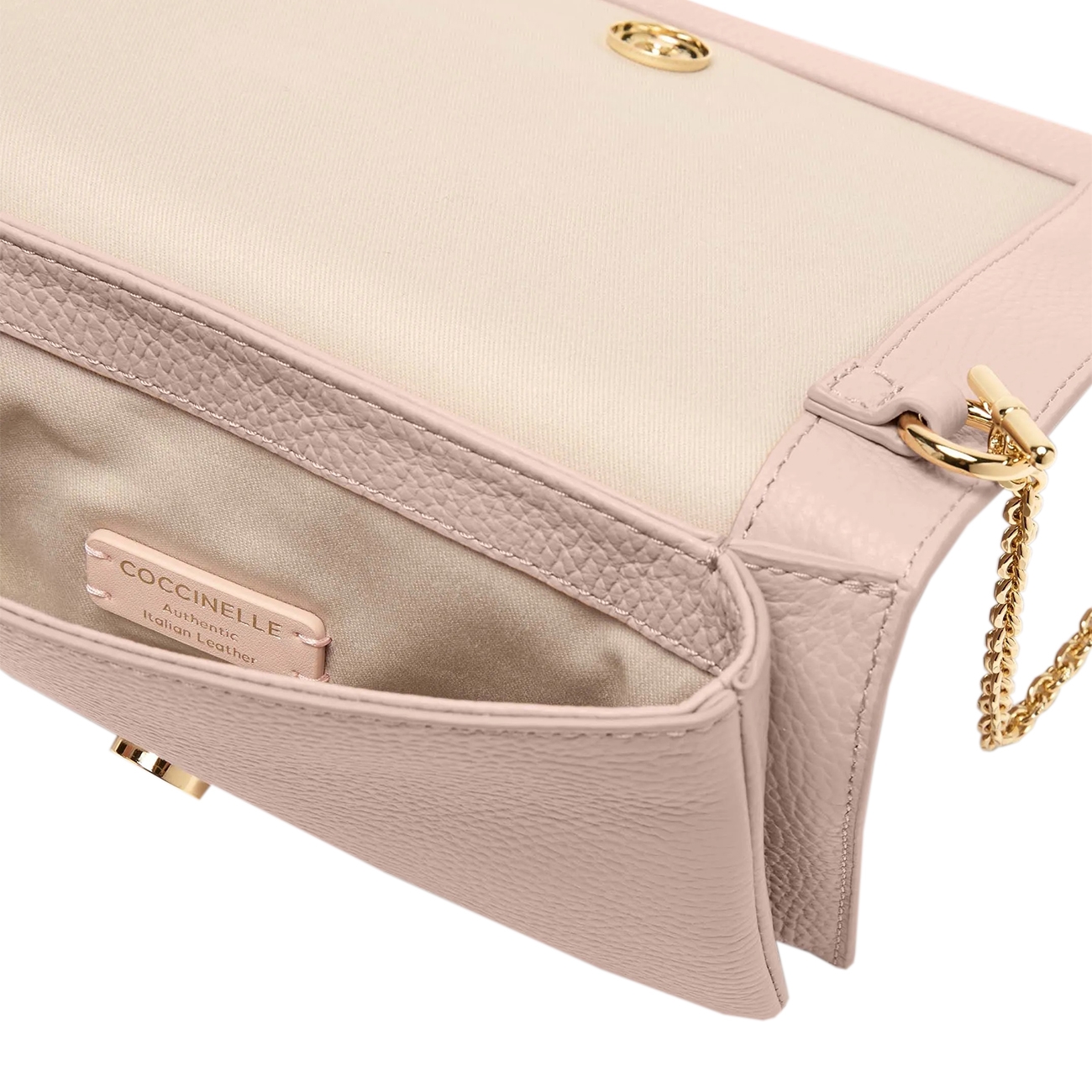 Coccinelle este un brand italienesc, originar din Parma, ce creează accesorii pentru viața de zi cu zi a femeilor din întreaga lume. Brandul are un stil contemporan și se mândrește cu produse calitative, lucrate cu cea mai mare atenție la detalii. Produsele Coccinelle reflectă femeia modernă și îi permite să scoată în evidență stilul și individualitatea. Dandy Mini reinterpretează luxul într-o formă compactă, fiind o alegere ideală pentru femeia modernă. Fabricată din piele prelucrată cu tehnologie avansată și finisată prin procedura de tumbled, geanta impresionează prin moliciune și durabilitate. Cureaua de umăr tip lanț aduce o notă de strălucire, sporind versatilitatea genții. În plus, construcția ingenioasă cu burduf maximizează spațiul interior, păstrându-ți esențialele organizate și ușor accesibile.