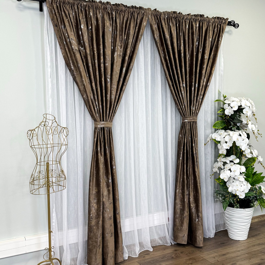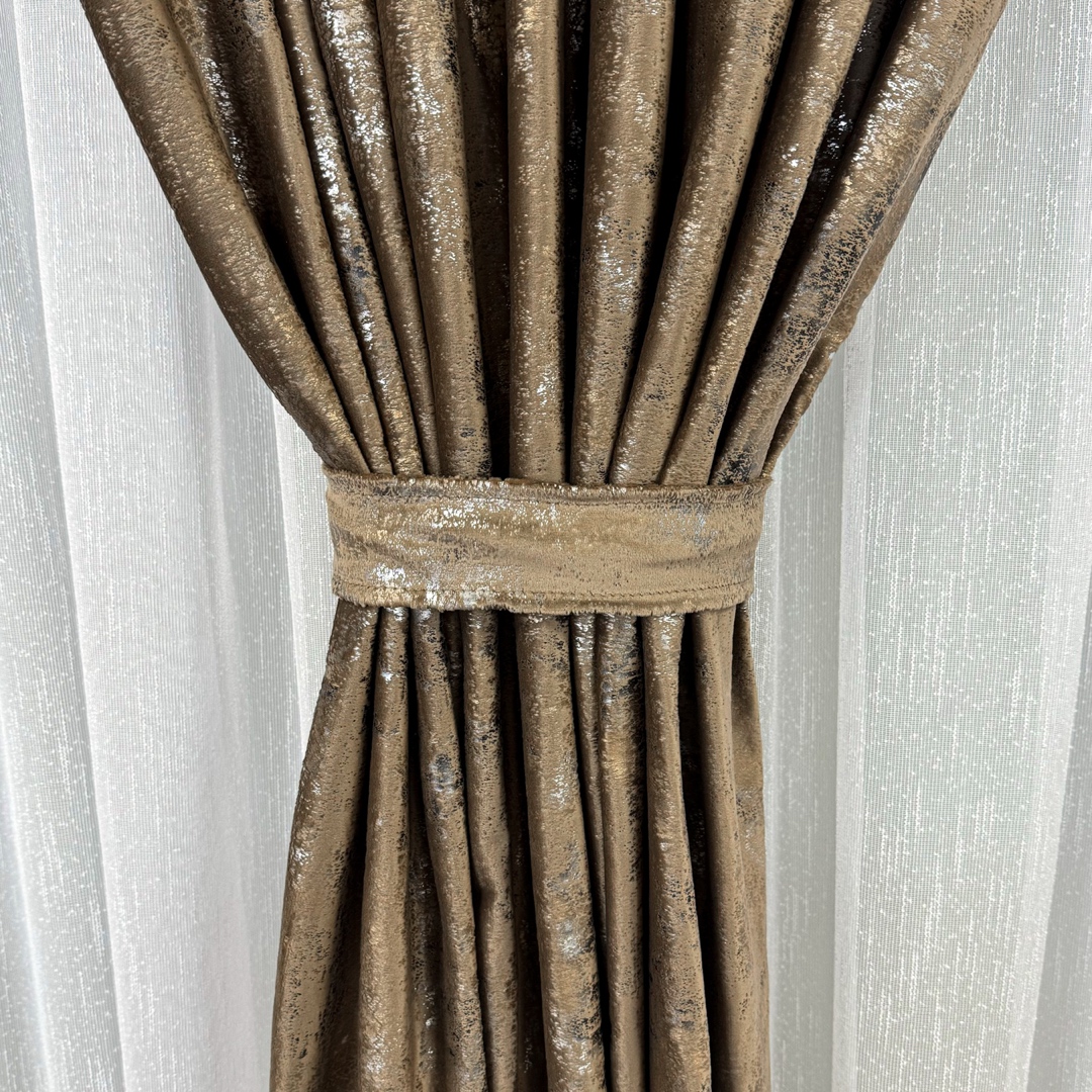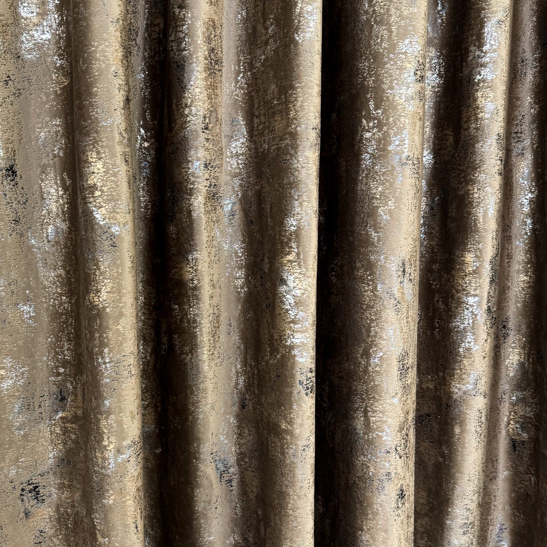 Draperie Catifea Asama cu insertii aurii, 140cm latime x 260cm inaltime, cu TIV LAT, Maro - V7