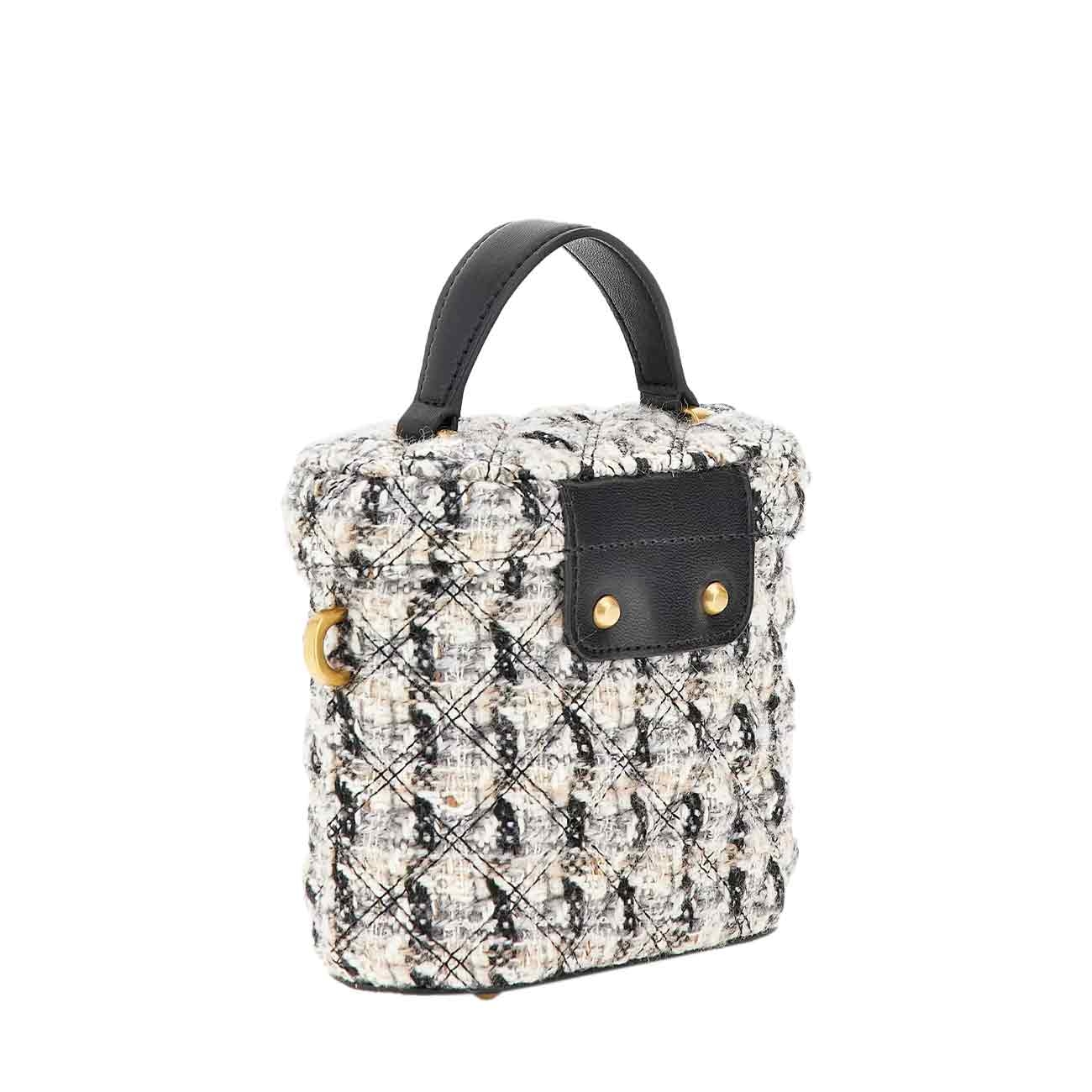 Guess și-a început povestea în 1981 în dorința de a crea blugi unisex. De atunci brand-ul a evoluat și a devenit unul dintre cele mai cunoscute nume din lume, oferind o gamă largă de articole vestimentare, bijuterii, genți, încălțări și accesorii. Giully Tweed Mini Handbag este o geantă de umăr care îmbină eleganța, stilul și funcționalitatea. Închiderea cu capac și mecanism de blocare cu capse asigură siguranța conținutului și adaugă un element de design și stil. Prin bretelele de umăr, geanta poate fi purtată în mod confortabil și ușor ca o geantă crossbody.