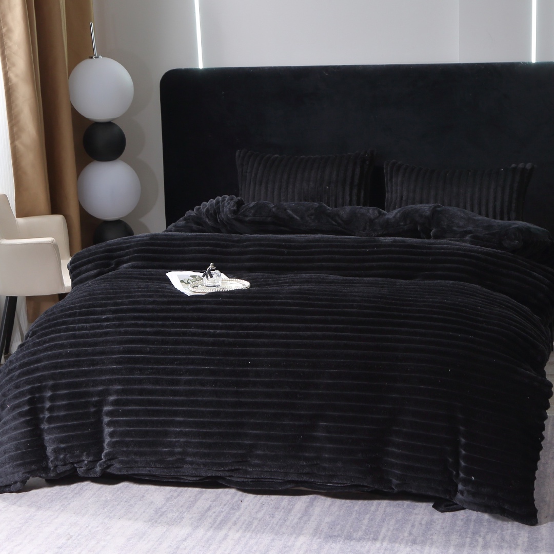 Lenjerie de Pat Dublu, 4 piese, Blanita Artificiala de Iepure Cocolino, Model Gofrat – Moale, Calduroasa si Eleganta pentru Nopti de Vis, Negru