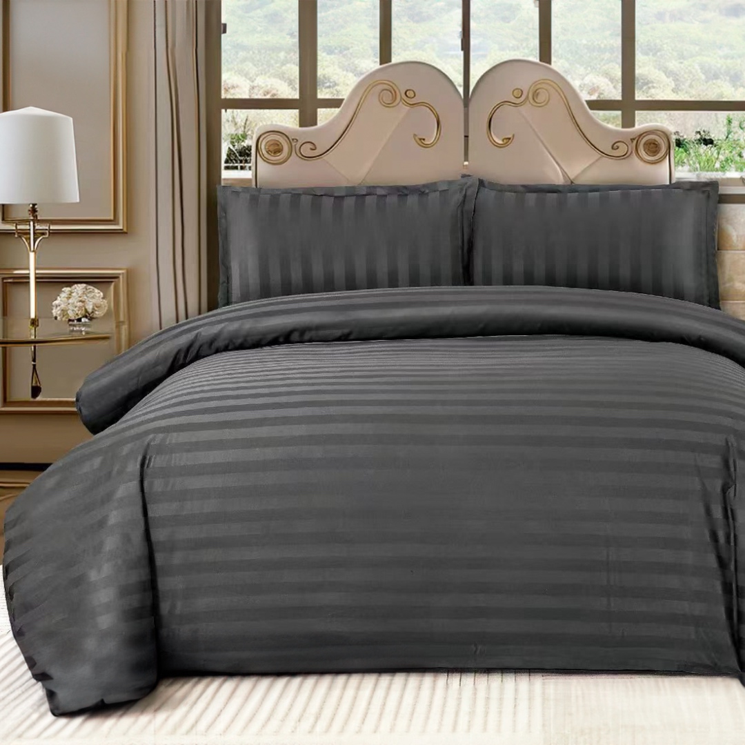 Lenjerie HoReCa, pat dublu, Damasc Finetat Deluxe cu Elastic, 4 piese, Antracit