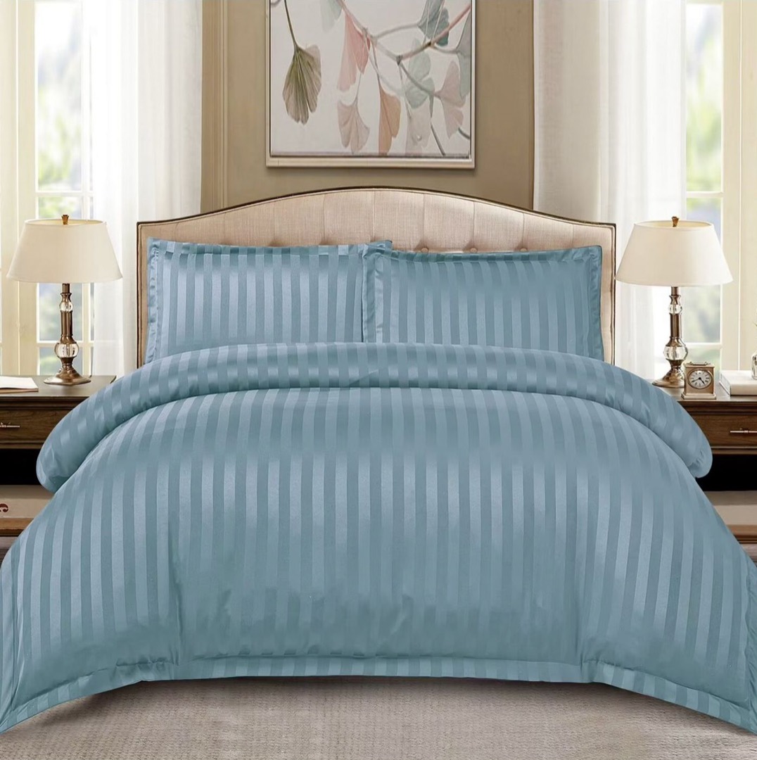 Lenjerie de Pat Dublu din Damasc Finetat – Lux si Confort la Superlativ Transforma-ti dormitorul intr-un sanctuar de eleganta si rafinament cu lenjeria de pat dublu din damasc finetat. Acest set premium, compus din 4 piese, este conceput pentru a oferi o experienta de somn de neegalat, aducand in casa ta senzatia de lux specifica hotelurilor de 5 stele. Material de Inalta Calitate: Damasc Finetat Damascul finetat este o tesatura deosebita, recunoscuta pentru finetea si durabilitatea sa