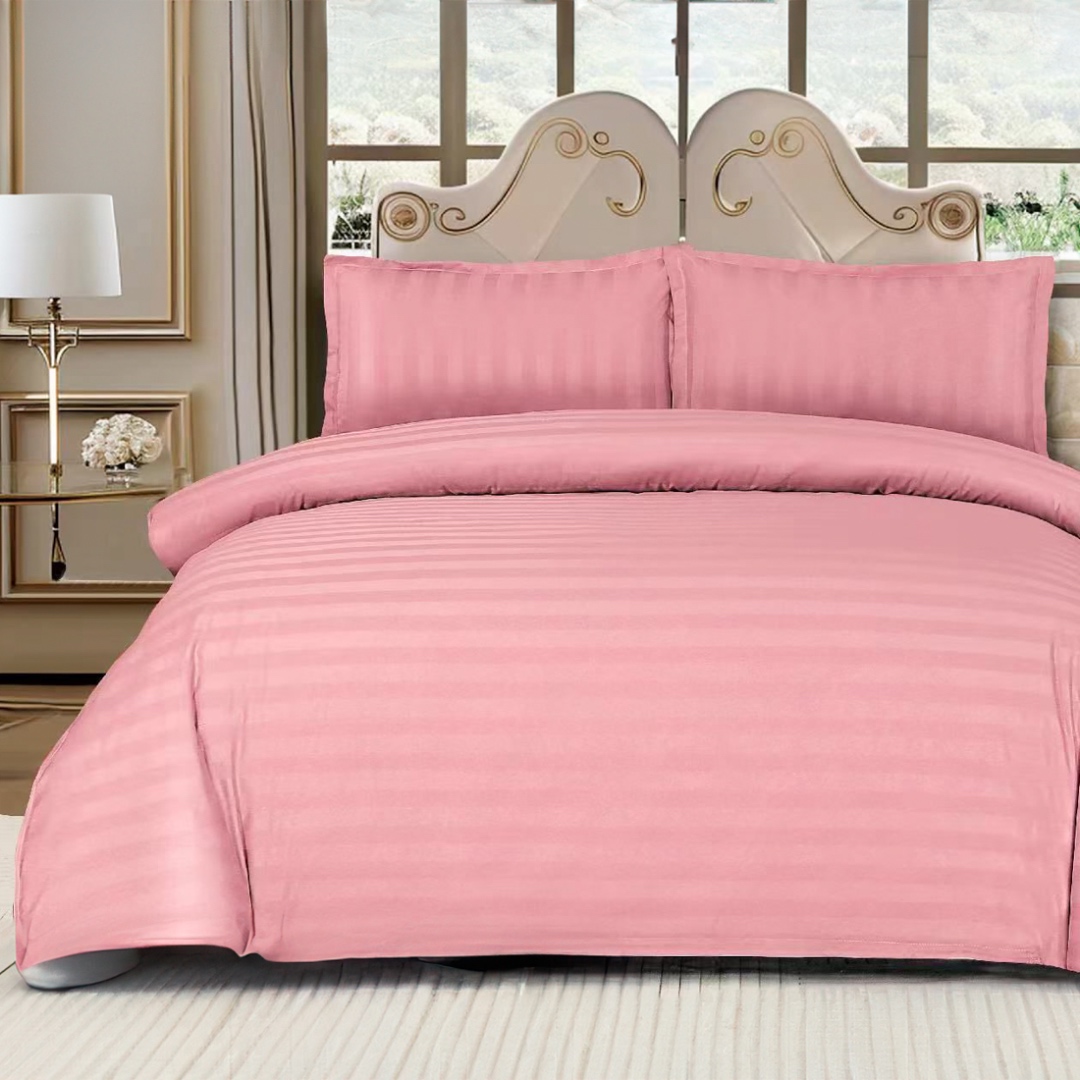 Lenjerie HoReCa, pat dublu, Damasc Finetat Deluxe cu Elastic, 4 piese, Roz
