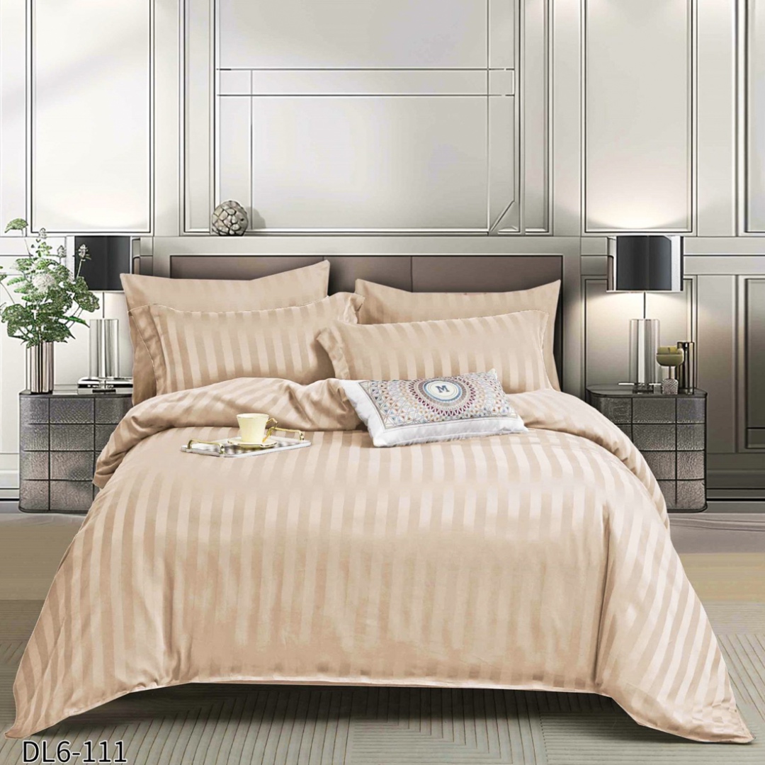 Lenjerie HoReCa, pat dublu, Damasc Finetat Deluxe cu Elastic, 6 piese, Bej