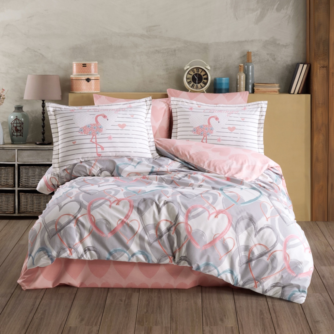 Lenjerie Pat Dublu, Bumbac 100% Poplin, 4 piese, Hobby Diana – Gri