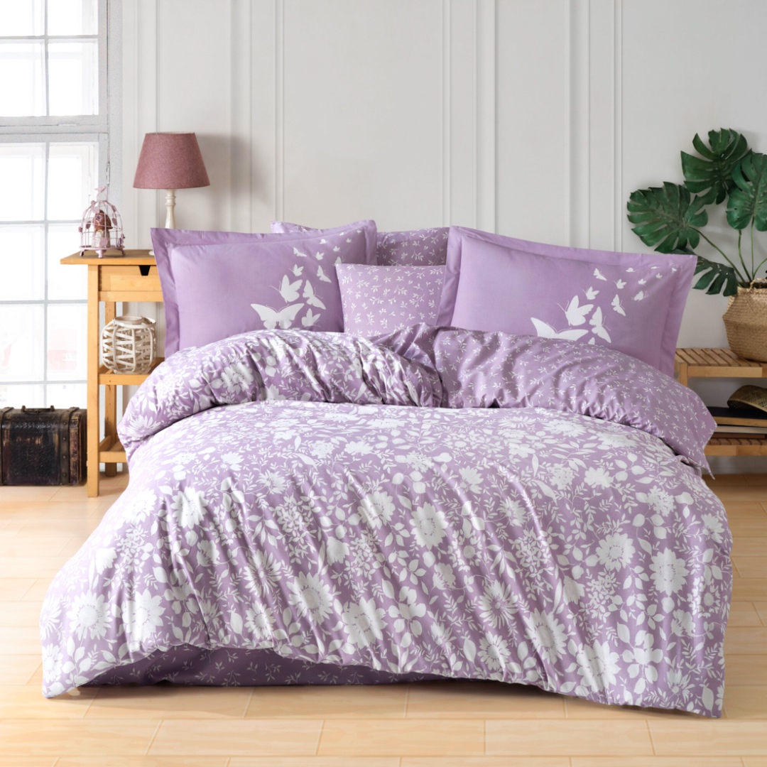Lenjerie Pat Dublu, Bumbac 100% Poplin, 4 piese, Hobby Hira – Lila