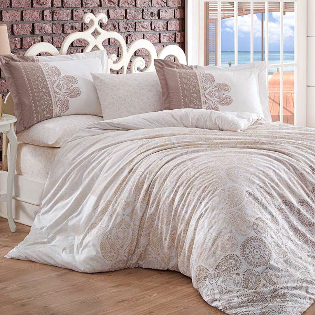 Lenjerie Pat Dublu, Bumbac 100% Poplin, 4 piese, Hobby Irene – Beige
