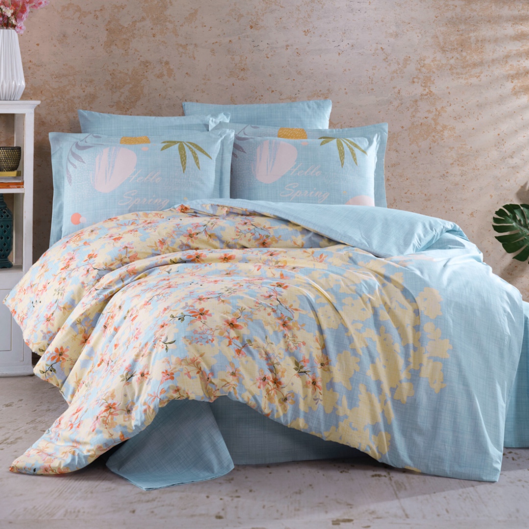 Lenjerie Pat Dublu, Bumbac 100% Poplin, 4 piese, Hobby Lili – Mavi