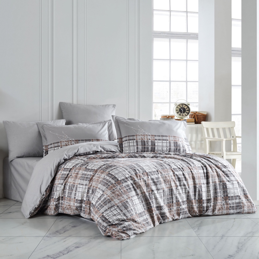 Lenjerie Pat Dublu, Bumbac 100% Poplin, 4 piese, Hobby Lucia – Gri