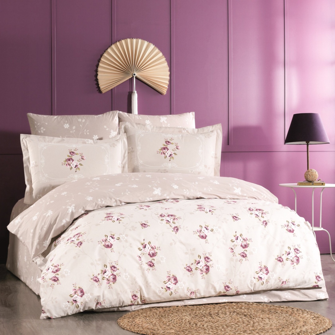 Lenjerie Pat Dublu, Bumbac 100% Poplin, 4 piese, Hobby Martha - Bej