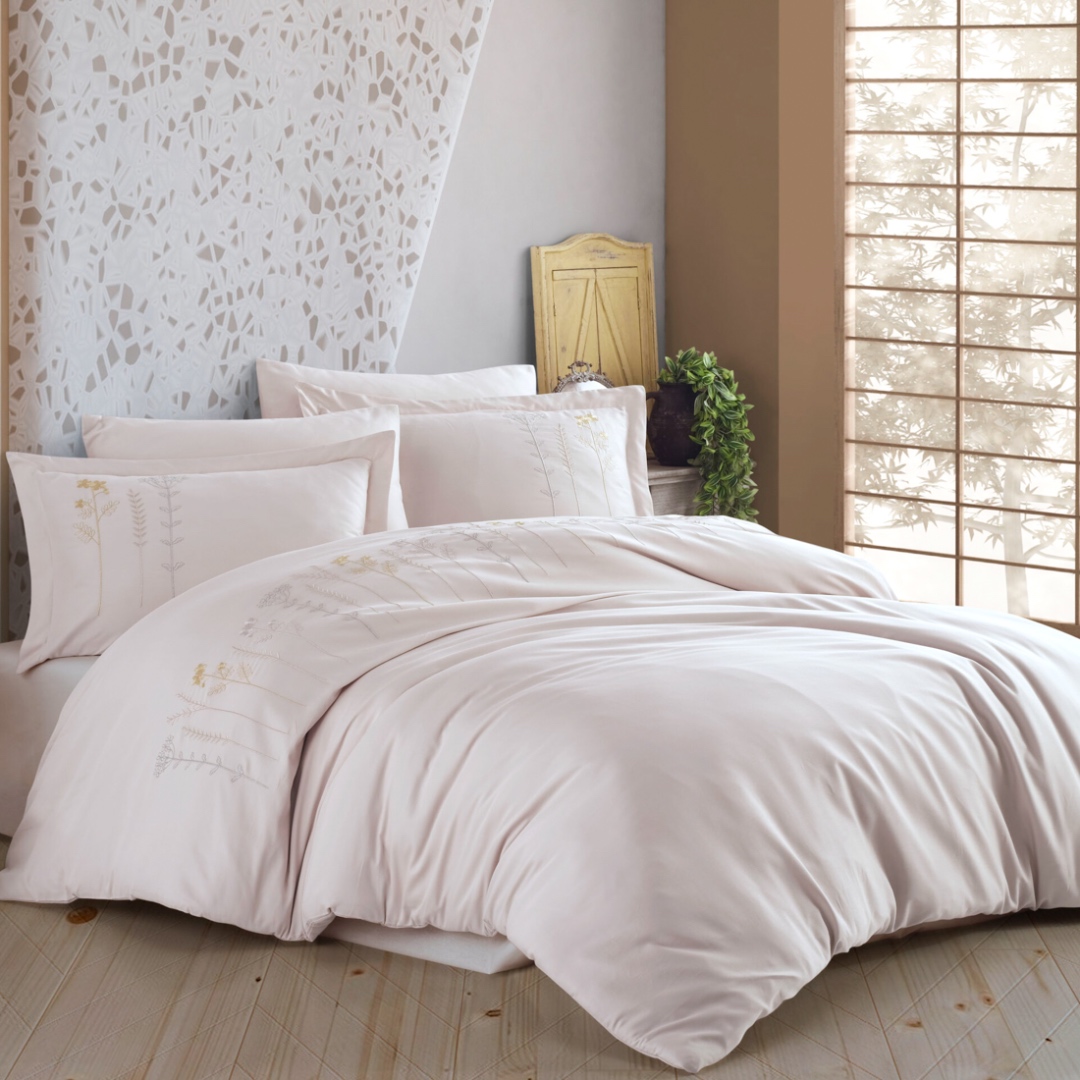 Lenjerie Pat Dublu, Bumbac 100% Poplin, cu Broderie, 4 piese, Hobby Diva - Bej