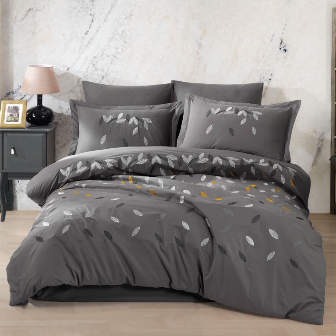 Lenjerie Pat Dublu, Bumbac 100% Poplin, cu Broderie, 4 piese, Hobby Lida - Gri