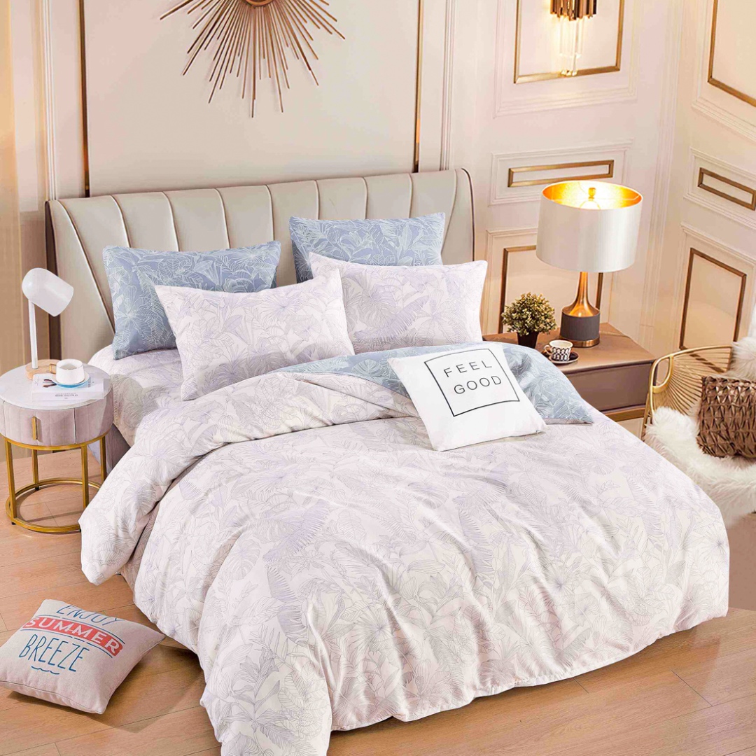 Lenjerie pat dublu, FINET, 6 piese, cu ELASTIC, Jojo Home, Bej deschis, frunze