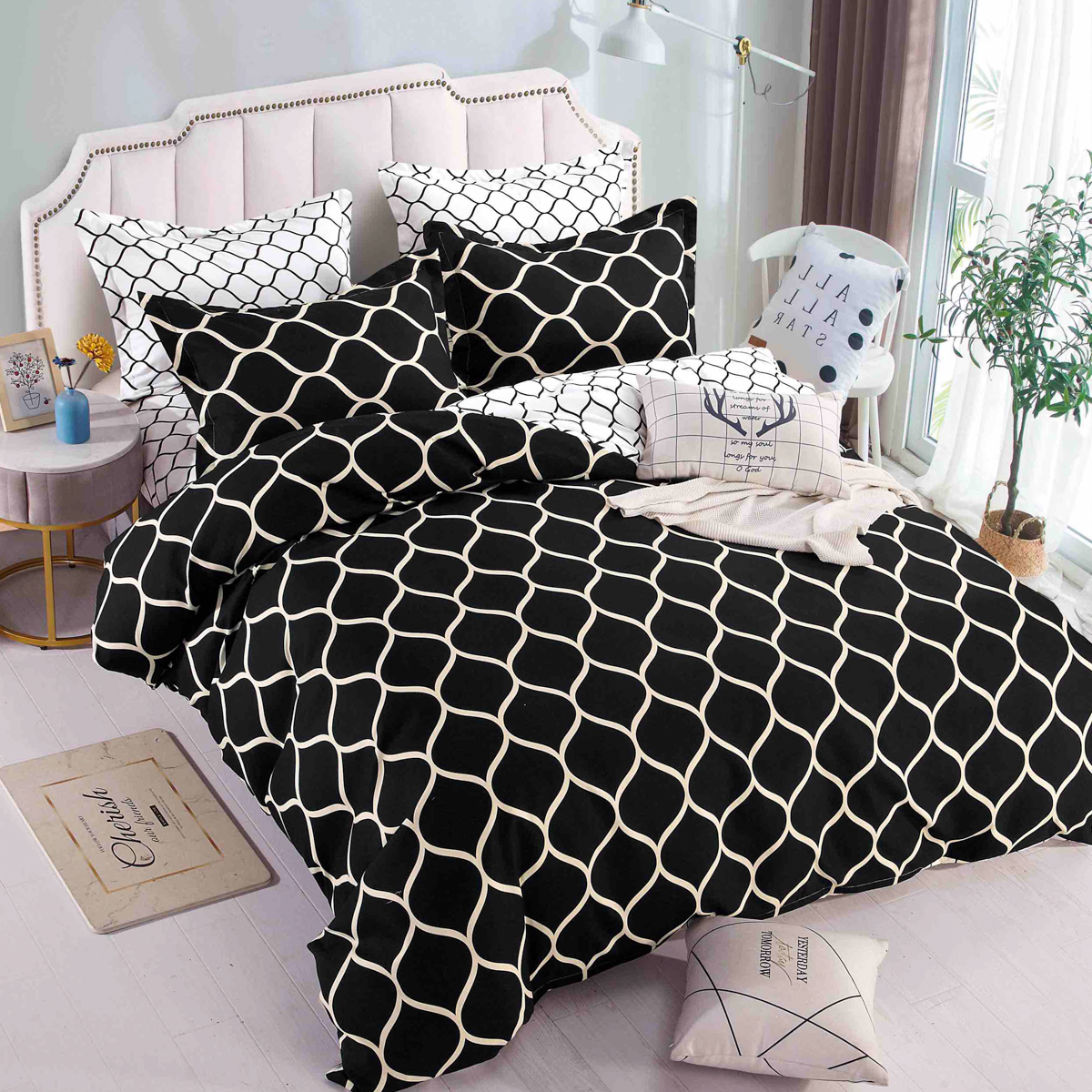 Lenjerie pat dublu, FINET, 6 piese, cu ELASTIC, Jojo Home, Negru-Alb, model elegant