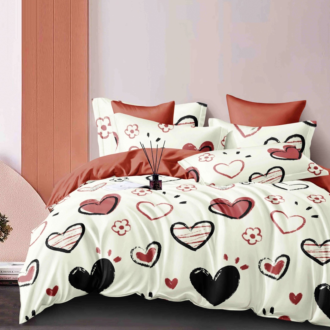 Lenjerie pat dublu, FINET, 6 piese, Jojo Home, Crem, inimioare