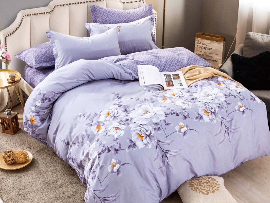 Lenjerie pat dublu, FINET, 6 piese, Jojo Home, Lila-Multicolor, flori