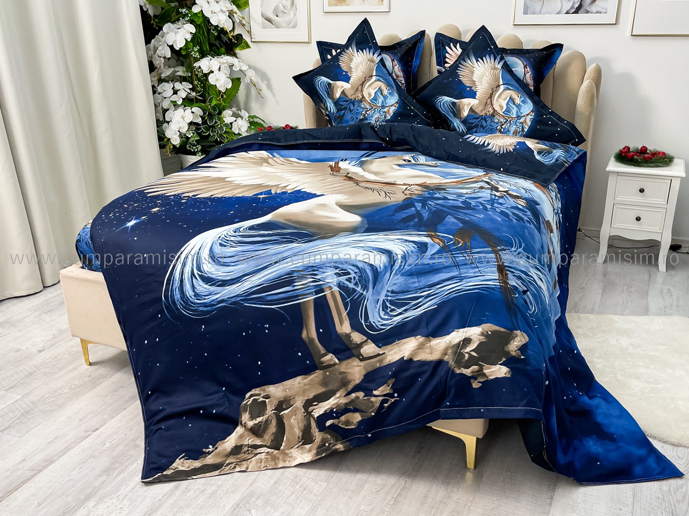 Lenjerie de Pat Dublu 6 Piese – Imprimeu Digital, 100% Bumbac Finet Premium     Adauga un plus de rafinament dormitorului tau cu aceasta lenjerie de pat dublu, cu imprimeu digital clar si vibrant, exact ca in poza. Fabricata din bumbac 100% Finet, este alegerea ideala pentru cei care isi doresc un produs estetic, durabil si usor de intretinut.   Avantajele imprimeului digital: Model identic cu cel din fotografie – fidelitate ridicata a culorilor si detaliilorCulori intense, rezistente