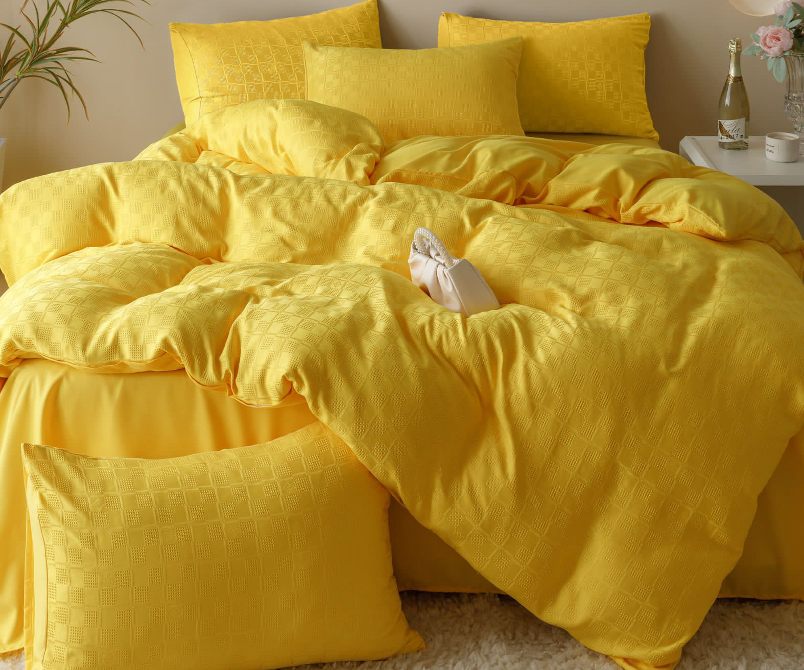 Lenjerie pat dublu, JACQUARD FINETAT, 6 piese, Jojo Home, Galben intens