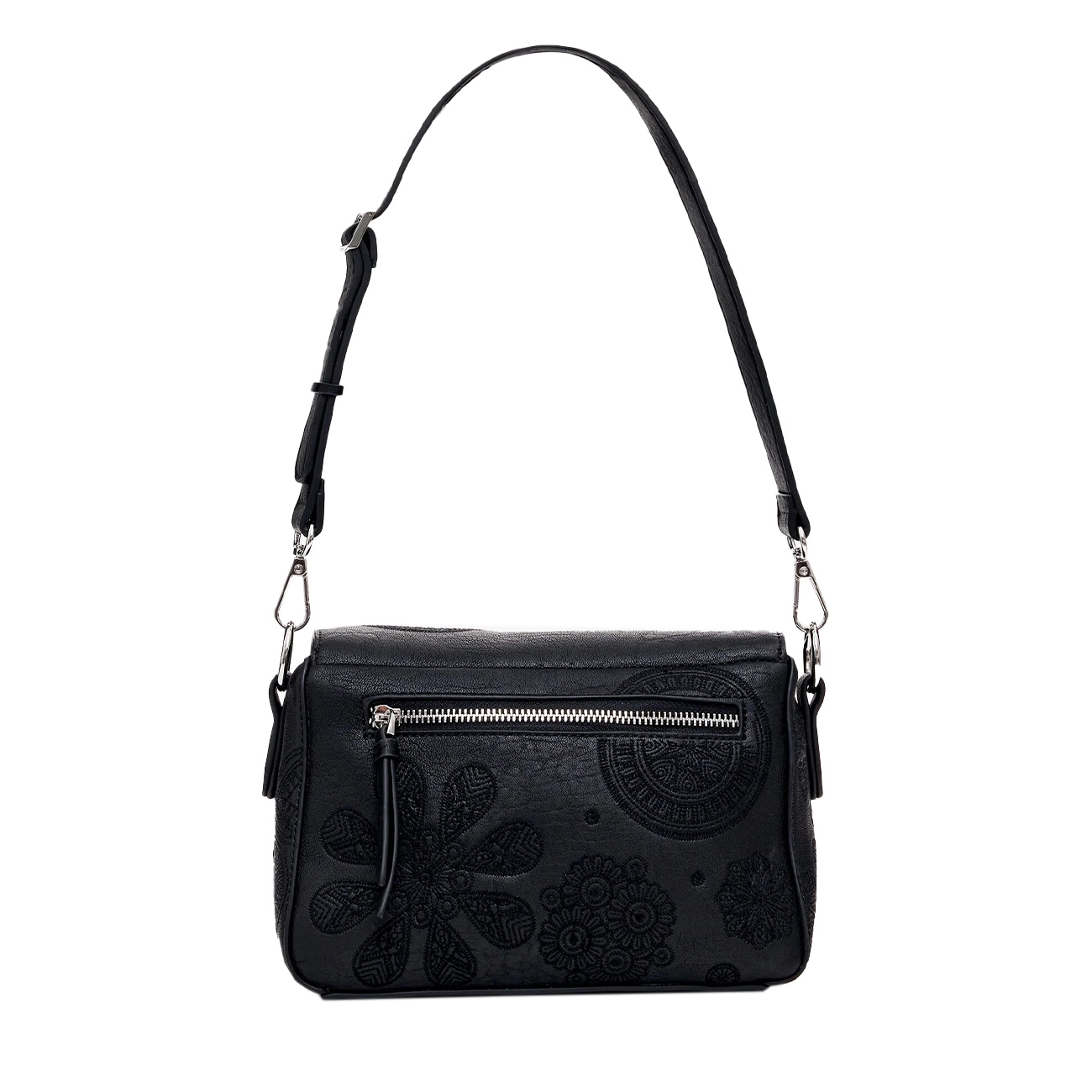 Desigual este un brand fondat în anul 1984 de către Thomas Meyer în Barcelona. De-a lungul timpului brand-ul a inspirat milioane de oameni cu design-urile sale autentice, optimiste și nonconformiste. Această geantă din material imitație de piele îți oferă nu doar eleganță, dar și funcționalitate, fiind convertibilă într-un rucsac pentru mai multă libertate de mișcare. Închiderea cu clapetă asigură siguranța obiectelor tale, iar buzunarul exterior posterior adaugă un plus de confort pentru acces rapid. Detaliile de breloc detașabil cu motive brodate oferă un design unic, iar mânerele scurte permit o purtare comodă. Fabricată din Recycled polyester, această geantă este perfectă pentru cei care doresc să adauge un strop de stil în timp ce protejează mediul.