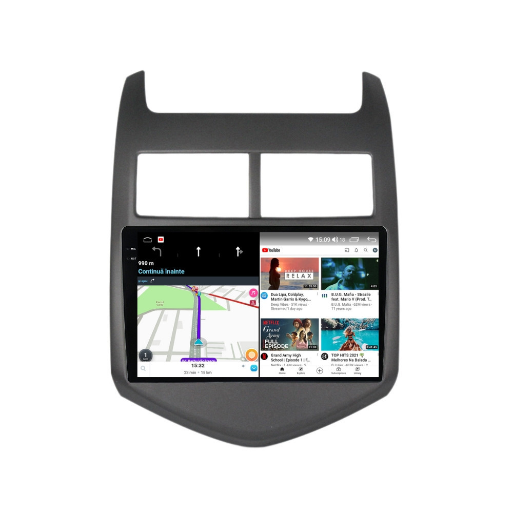 Navigatie dedicata cu Android Chevrolet Aveo 2011 - 2014, 12GB RAM, Radio GPS Dual Zone, Display 2K QLED 9.5 Touchscreen, Internet Wi-Fi si slot SIM 4G, Bluetooth, MirrorLink, USB, Waze