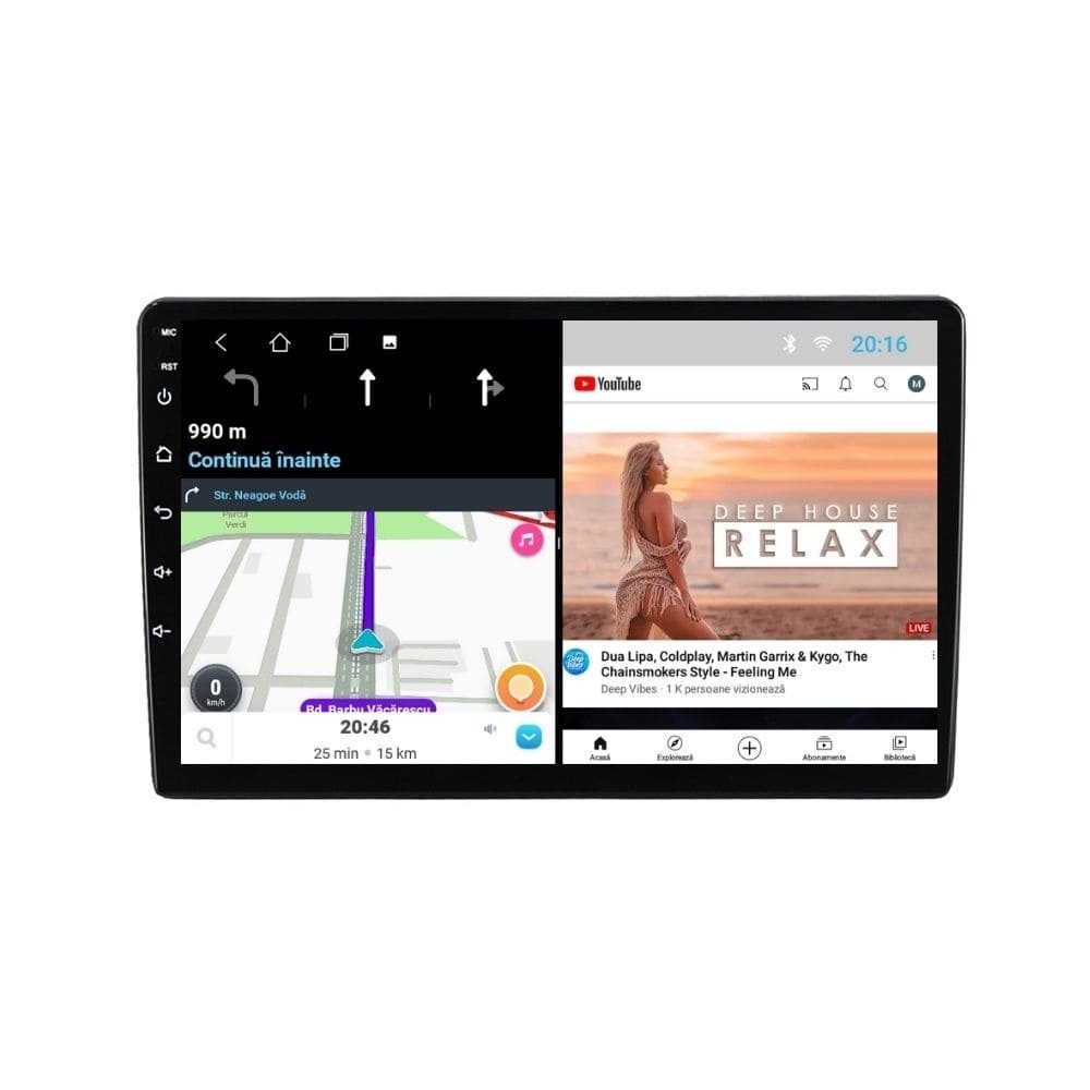 Sistem de operare: Car Android 14 cu meniu în peste 60 de limbi (inclusiv limba română) Procesor: Quad Core ARM Cortex-A7 1.3Ghz Memorie internă: 2GB RAM + 32GB stocare (extensibilă prin 2 sloturi USB de maxim 64GB) Display: Touchscreen 9 inch IPS HD 1280x720, multi-touch, format 16:9, cu margini curbate și tehnologie 2.5D Chipset GPS: Samsung Sirf Star IV cu 48 de canale (antenă GPS inclusă) Conectivitate: Wi-Fi, Bluetooth, 2 x USB, RCA, AUX Plug & Play: Mufă dedicată, navigaţia preia comenzile de pe volanul maşinii şi nu descarcă bateria acesteia Cooler răcire activă: Ventilatorul integrat menține o temperatură optimă, asigurând astfel navigației o durată de viaţă mai mare Audio: 4 x 45W + ieşire subwoofer Radio: FM 87.5 - 108.0 Mhz Dual Zone: Poţi asculta muzică şi folosi aplicaţia preferată de navigare (iGO, Waze, Maps etc.) în acelaşi timp PLUG & PLAY Navigația se potrivește perfect în bord, iar mufa este identică cu cea a maşinii. Nu ai nevoie de altă ramă şi nu trebuie să modifici instalaţia electrică. Comenzile de pe volan rămân funcţionale, iar navigaţia se va opri când iei contactul şi nu va descărca bateria maşinii. În pachet sunt incluse toate cablurile necesare montării navigaţiei, precum şi cele auxiliare (RCA, USB etc.). UNIVERSUL ANDROID ÎN CONFORTUL MAŞINII TALE Aplicaţiile preferate vin acum pe ecranul navigaţiei tale. Poţi instala orice aplicaţie din magazinul Google Play: Waze, Google Maps, YouTube, Spotify, Google Chrome, Instagram, Facebook, WhatsApp etc. Fără a mai avea nevoie de telefon, te poţi strecura prin traficul aglomerat folosind Waze sau Google Maps şi în acelaşi timp poţi asculta muzica preferată sau viziona filmele și videoclipurile favorite pe YouTube, Spotify, Apple Music etc. GPS DUAL ZONE Navigaţia dispune de un modul şi o antenă GPS de calitate superioară, care te localizează cu precizie şi te ajută să ajungi la destinaţie în cel mai scurt timp, fără a avea nevoie de telefon. Dual zone: Poţi asculta muzică în timp ce foloseşti aplicaţia preferată de navigare, vocea aplicaţiei suprapunându-se, atunci când este cazul, peste muzică. COMPATIBILĂ CU ORICE TELEFON Deşi navigaţia dispune de propriul sistem de operare Android care funcţionează independent de telefon, la aceasta se poate conecta orice telefon cu Android sau iPhone prin Bluetooth sau Wi-Fi. Poţi folosi cu uşurinţă orice aplicaţie instalată pe telefon fără a o instala şi pe navigaţie şi primeşti toate notificările de pe telefon direct pe ecranul navigaţiei. BLUETOOTH, WI-FI ŞI MIRRORLINK INTEGRATE Spune adio amenzilor pentru folosirea telefonului la volan. Poţi descărca contactele din telefon pe navigaţie şi poţi iniţia şi prelua apeluri direct de pe ecranul navigaţiei, precum şi asculta muzica preferată de pe telefon. Navigaţia se conectează rapid la orice reţea wireless, inclusiv la hotspot-ul telefonului, iar cu ajutorul tehnologiei MirrorLink poţi oglindi imaginea telefonului pe navigaţie. MULTIPLE INTERFEȚE DISPONIBILE Interfața navigației se poate schimba cu ușurință, aceasta având 4 teme preinstalate, astfel încat să se plieze pe stilul și gustul tau. De asemenea, o poți personaliza foarte ușor cu alte teme disponibile în aplicații de tip Car Launcher. Nu trebuie să ştii engleză pentru a putea folosi navigaţia. Poţi afişa meniul în peste 60 de limbi, inclusiv română, engleză, spaniolă sau franceză. SUPORT DVR, CAMERĂ MARȘARIER ȘI SENZORI PARCARE AFTERMARKET Niciodată nu a fost atât de simplu să parchezi. Când schimbătorul ajunge în marșarier, pe ecranul navigației se va afișa automat imaginea video din spatele mașinii, împreună cu liniile de ghidaj. Senzorii de parcare, fiind de asemenea afişaţi pe navigaţie, te vor avertiza atât vizual, cât şi acustic. Înregistrarea video realizată de camera de bord DVR te poate scăpa de amenzi sau alte situaţii neplăcute, fiind martorul tău de încredere în cazul producerii unui eveniment nedorit în trafic. SUPORT INTERFAȚĂ OBDII Un adaptor Bluetooth OBDII este de un real ajutor atunci când o eroare apare în bordul maşinii. Cu ajutorul lui poţi citi, interpreta sau șterge eventualele coduri de eroare şi îţi poţi da seama cu uşurinţă ce nu este în regulă cu maşina ta. În plus, poți afișa pe ecranul navigației informații în timp real despre starea mașinii cu ajutorul unor aplicații dedicate precum Torque sau Car Scanner. NAVIGAȚIE CU ANDROID - SISTEMUL COMPLET DE INFOTAINMENT DIN MAȘINA TA