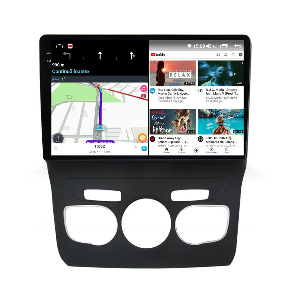 Sistem de operare: Car Android 13 cu meniu în peste 60 de limbi (inclusiv limba română) Procesor: Octa Core UIS7862S 2GHz Memorie internă: 8GB RAM + 128GB stocare (extensibilă prin 3 sloturi USB de maxim 64GB) Display: Touchscreen 10.36 inch QLED 2K 2000x1200, multi-touch, format 16:9, cu margini curbate și tehnologie 2.5D Chipset GPS: Samsung Sirf Star IV cu 48 de canale (antenă GPS inclusă) Fast Boot: Navigația pornește instant în momentul în care se pune contactul Conectivitate: Slot SIM 4G, Wi-Fi Dual Band 2.4Ghz si 5Ghz, Bluetooth, 3 x USB, RCA, AUX Plug & Play: Mufă dedicată, navigaţia preia comenzile de pe volanul maşinii şi nu descarcă bateria acesteia Cooler răcire activă: Ventilatorul integrat menține o temperatură optimă, asigurând astfel navigației o durată de viaţă mai mare Control prin gesturi: Glisezi cu 2 degete în sus sau în jos pentru a modifica volumul sau în lateral pentru schimbarea melodiei Asistent virtual: Poţi controla cu ușurință navigația prin comenzi vocale cu ajutorul asistentului virtual integrat Audio: 4 x 45W + ieşire subwoofer, DTS 4.1 & 5.1, egalizator și procesor de sunet DSP Radio: FM (87.5 - 108.0 Mhz) şi AM (522 - 1620 Khz) cu funcție RDS Dual Zone: Poţi asculta muzică şi folosi aplicaţia preferată de navigare (iGO, Waze, Maps etc.) în acelaşi timp PLUG & PLAY Navigația se potrivește perfect în bord, iar mufa de alimentare este identică cu cea a maşinii. Nu ai nevoie de ramă adaptoare şi nici nu trebuie să modifici instalaţia electrică. Comenzile de pe volan rămân funcţionale, iar navigaţia se va opri când iei contactul şi nu va descărca bateria maşinii. În pachet sunt incluse toate cablurile necesare montării navigaţiei, precum şi cele auxiliare (RCA, USB etc.). UNIVERSUL ANDROID ÎN CONFORTUL MAŞINII TALE Aplicaţiile preferate vin acum pe ecranul navigaţiei tale. Poţi instala orice aplicaţie din magazinul Google Play: Waze, Google Maps, YouTube, Spotify, Google Chrome, Instagram, Facebook, WhatsApp etc. Fără a mai avea nevoie de telefon, te poţi strecura prin traficul aglomerat folosind Waze sau Google Maps şi în acelaşi timp poţi asculta muzica preferată sau viziona filmele și videoclipurile favorite pe YouTube, Spotify, Apple Music etc. GPS DUAL ZONE Navigaţia dispune de un modul şi o antenă GPS de calitate superioară, care te localizează cu precizie şi te ajută să ajungi la destinaţie în cel mai scurt timp, fără a avea nevoie de telefon. Dual zone: Poţi asculta muzică în timp ce foloseşti aplicaţia preferată de navigare, vocea aplicaţiei suprapunându-se, atunci când este cazul, peste muzică. COMPATIBILĂ CU ORICE TELEFON Deşi navigaţia dispune de propriul sistem de operare Android care funcţionează independent de telefon, la aceasta se poate conecta orice telefon cu Android sau iPhone prin Bluetooth sau Wi-Fi. Poţi folosi cu uşurinţă aplicațiile instalate pe telefon prin intermediul Android Auto sau Apple CarPlay şi primeşti toate notificările de pe telefon pe ecranul navigaţiei. SLOT SIM 4G, BLUETOOTH, WI-FI ŞI MIRRORLINK INTEGRATE Spune adio amenzilor pentru folosirea telefonului la volan. Poţi descărca agenda telefonică pe navigaţie şi poţi iniţia şi prelua apeluri de pe ecranul navigaţiei, precum şi asculta muzica preferată de pe telefon. Navigaţia se conectează rapid la orice reţea wireless, inclusiv la hotspot-ul telefonului, precum și la internet 4G, introducând o cartelă cu internet în slotul SIM. Cu ajutorul tehnologiei MirrorLink poţi beneficia de funcțiile Android Auto sau Apple CarPlay. MULTIPLE INTERFEȚE DISPONIBILE Interfața navigației se poate schimba cu ușurință, aceasta având 4 teme preinstalate, astfel încat să se plieze pe stilul și gustul tau. De asemenea, o poți personaliza foarte ușor cu alte teme disponibile în aplicații de tip Car Launcher. Nu trebuie să ştii engleză pentru a putea folosi navigaţia. Poţi afişa meniul în peste 60 de limbi, inclusiv română, engleză, spaniolă sau franceză. SUPORT DVR, CAMERĂ MARȘARIER ȘI SENZORI PARCARE AFTERMARKET Niciodată nu a fost atât de simplu să parchezi. Când schimbătorul ajunge în marșarier, pe ecranul navigației se va afișa automat imaginea video din spatele mașinii, împreună cu liniile de ghidaj. Senzorii de parcare, fiind de asemenea afişaţi pe navigaţie, te vor avertiza atât vizual, cât şi acustic. Înregistrarea video realizată de camera de bord DVR te poate scăpa de amenzi sau alte situaţii neplăcute, fiind martorul tău de încredere în cazul producerii unui eveniment nedorit în trafic. SUPORT INTERFAȚĂ OBDII Un adaptor Bluetooth OBDII este de un real ajutor atunci când o eroare apare în bordul maşinii. Cu ajutorul lui poţi citi, interpreta sau șterge eventualele coduri de eroare şi îţi poţi da seama cu uşurinţă ce nu este în regulă cu maşina ta. În plus, poți afișa pe ecranul navigației informații în timp real despre starea mașinii cu ajutorul unor aplicații dedicate precum Torque sau Car Scanner. NAVIGAȚIE CU ANDROID - SISTEMUL COMPLET DE INFOTAINMENT DIN MAȘINA TA