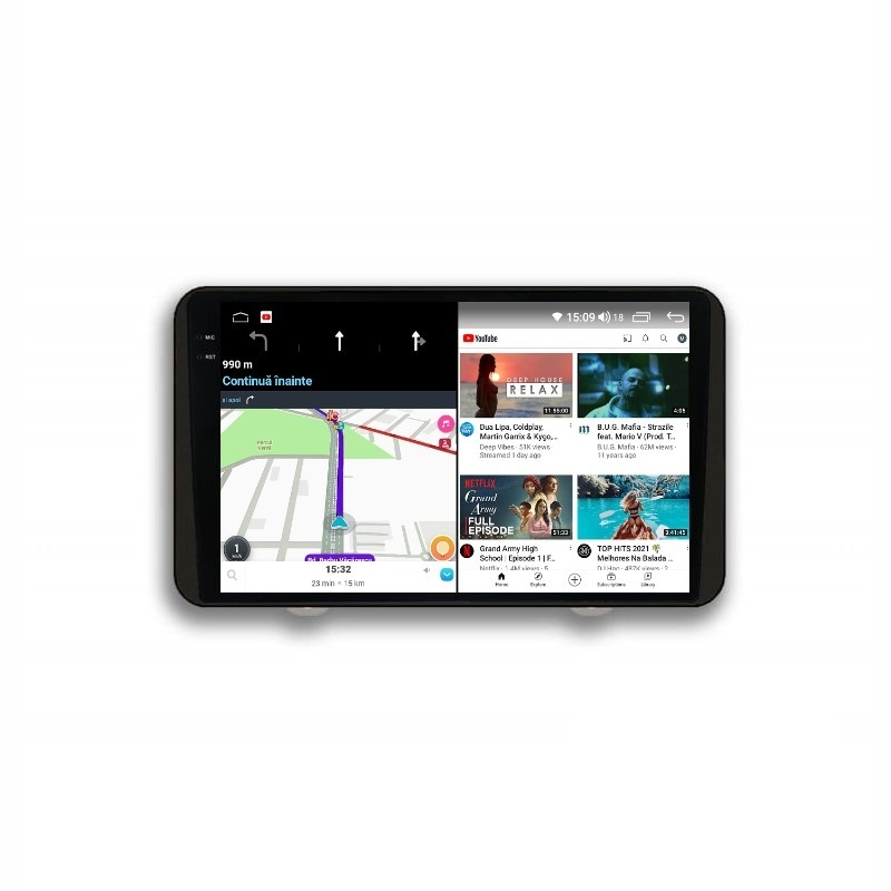 Sistem de operare: Car Android 14 cu meniu în peste 60 de limbi (inclusiv limba română) Procesor: Octa Core UIS7870S 2.7Ghz Memorie internă: 12GB RAM + 256GB stocare (extensibilă prin 3 sloturi USB de maxim 64GB) Display: Touchscreen 10.36 inch QLED 2K 2000x1200, multi-touch, format 16:9, cu margini curbate și tehnologie 2.5D Chipset GPS: Samsung Sirf Star IV cu 48 de canale (antenă GPS inclusă) Fast Boot: Navigația pornește instant în momentul în care se pune contactul Conectivitate: Slot SIM 4G, Wi-Fi Dual Band 2.4Ghz si 5Ghz, Bluetooth, 3 x USB, RCA, AUX Plug & Play: Mufă dedicată, navigaţia preia comenzile de pe volanul maşinii şi nu descarcă bateria acesteia Cooler răcire activă: Ventilatorul integrat menține o temperatură optimă, asigurând astfel navigației o durată de viaţă mai mare Control prin gesturi: Glisezi cu 2 degete în sus sau în jos pentru a modifica volumul sau în lateral pentru schimbarea melodiei Asistent virtual: Poţi controla cu ușurință navigația prin comenzi vocale cu ajutorul asistentului virtual integrat Audio: 4 x 45W + ieşire subwoofer, DTS 4.1 & 5.1, egalizator și procesor de sunet DSP Radio: FM (87.5 - 108.0 Mhz) şi AM (522 - 1620 Khz) cu funcție RDS Dual Zone: Poţi asculta muzică şi folosi aplicaţia preferată de navigare (iGO, Waze, Maps etc.) în acelaşi timp PLUG & PLAY Navigația se potrivește perfect în bord, iar mufa este identică cu cea a maşinii. Nu ai nevoie de altă ramă şi nu trebuie să modifici instalaţia electrică. Comenzile de pe volan rămân funcţionale, iar navigaţia se va opri când iei contactul şi nu va descărca bateria maşinii. În pachet sunt incluse toate cablurile necesare montării navigaţiei, precum şi cele auxiliare (RCA, USB etc.). UNIVERSUL ANDROID ÎN CONFORTUL MAŞINII TALE Aplicaţiile preferate vin acum pe ecranul navigaţiei tale. Poţi instala orice aplicaţie din magazinul Google Play: Waze, Google Maps, YouTube, Spotify, Google Chrome, Instagram, Facebook, WhatsApp etc. Fără a mai avea nevoie de telefon, te poţi strecura prin traficul aglomerat folosind Waze sau Google Maps şi în acelaşi timp poţi asculta muzica preferată sau viziona filmele și videoclipurile favorite pe YouTube, Spotify, Apple Music etc. GPS DUAL ZONE Navigaţia dispune de un modul şi o antenă GPS de calitate superioară, care te localizează cu precizie şi te ajută să ajungi la destinaţie în cel mai scurt timp, fără a avea nevoie de telefon. Dual zone: Poţi asculta muzică în timp ce foloseşti aplicaţia preferată de navigare, vocea aplicaţiei suprapunându-se, atunci când este cazul, peste muzică. COMPATIBILĂ CU ORICE TELEFON Deşi navigaţia dispune de propriul sistem de operare Android care funcţionează independent de telefon, la aceasta se poate conecta orice telefon cu Android sau iPhone prin Bluetooth sau Wi-Fi. Poţi folosi cu uşurinţă aplicațiile instalate pe telefon prin intermediul Android Auto sau Apple CarPlay şi primeşti toate notificările de pe telefon pe ecranul navigaţiei. SLOT SIM 4G, BLUETOOTH, WI-FI ŞI MIRRORLINK INTEGRATE Spune adio amenzilor pentru folosirea telefonului la volan. Poţi descărca agenda telefonică pe navigaţie şi poţi iniţia şi prelua apeluri de pe ecranul navigaţiei, precum şi asculta muzica preferată de pe telefon. Navigaţia se conectează rapid la orice reţea wireless, inclusiv la hotspot-ul telefonului, precum și la internet 4G, introducând o cartelă cu internet în slotul SIM. Cu ajutorul tehnologiei MirrorLink poţi beneficia de funcțiile Android Auto sau Apple CarPlay. MULTIPLE INTERFEȚE DISPONIBILE Interfața navigației se poate schimba cu ușurință, aceasta având 4 teme preinstalate, astfel încat să se plieze pe stilul și gustul tau. De asemenea, o poți personaliza foarte ușor cu alte teme disponibile în aplicații de tip Car Launcher. Nu trebuie să ştii engleză pentru a putea folosi navigaţia. Poţi afişa meniul în peste 60 de limbi, inclusiv română, engleză, spaniolă sau franceză. SUPORT DVR, CAMERĂ MARȘARIER ȘI SENZORI PARCARE AFTERMARKET Niciodată nu a fost atât de simplu să parchezi. Când schimbătorul ajunge în marșarier, pe ecranul navigației se va afișa automat imaginea video din spatele mașinii, împreună cu liniile de ghidaj. Senzorii de parcare, fiind de asemenea afişaţi pe navigaţie, te vor avertiza atât vizual, cât şi acustic. Înregistrarea video realizată de camera de bord DVR te poate scăpa de amenzi sau alte situaţii neplăcute, fiind martorul tău de încredere în cazul producerii unui eveniment nedorit în trafic. SUPORT INTERFAȚĂ OBDII Un adaptor Bluetooth OBDII este de un real ajutor atunci când o eroare apare în bordul maşinii. Cu ajutorul lui poţi citi, interpreta sau șterge eventualele coduri de eroare şi îţi poţi da seama cu uşurinţă ce nu este în regulă cu maşina ta. În plus, poți afișa pe ecranul navigației informații în timp real despre starea mașinii cu ajutorul unor aplicații dedicate precum Torque sau Car Scanner. NAVIGAȚIE CU ANDROID - SISTEMUL COMPLET DE INFOTAINMENT DIN MAȘINA TA