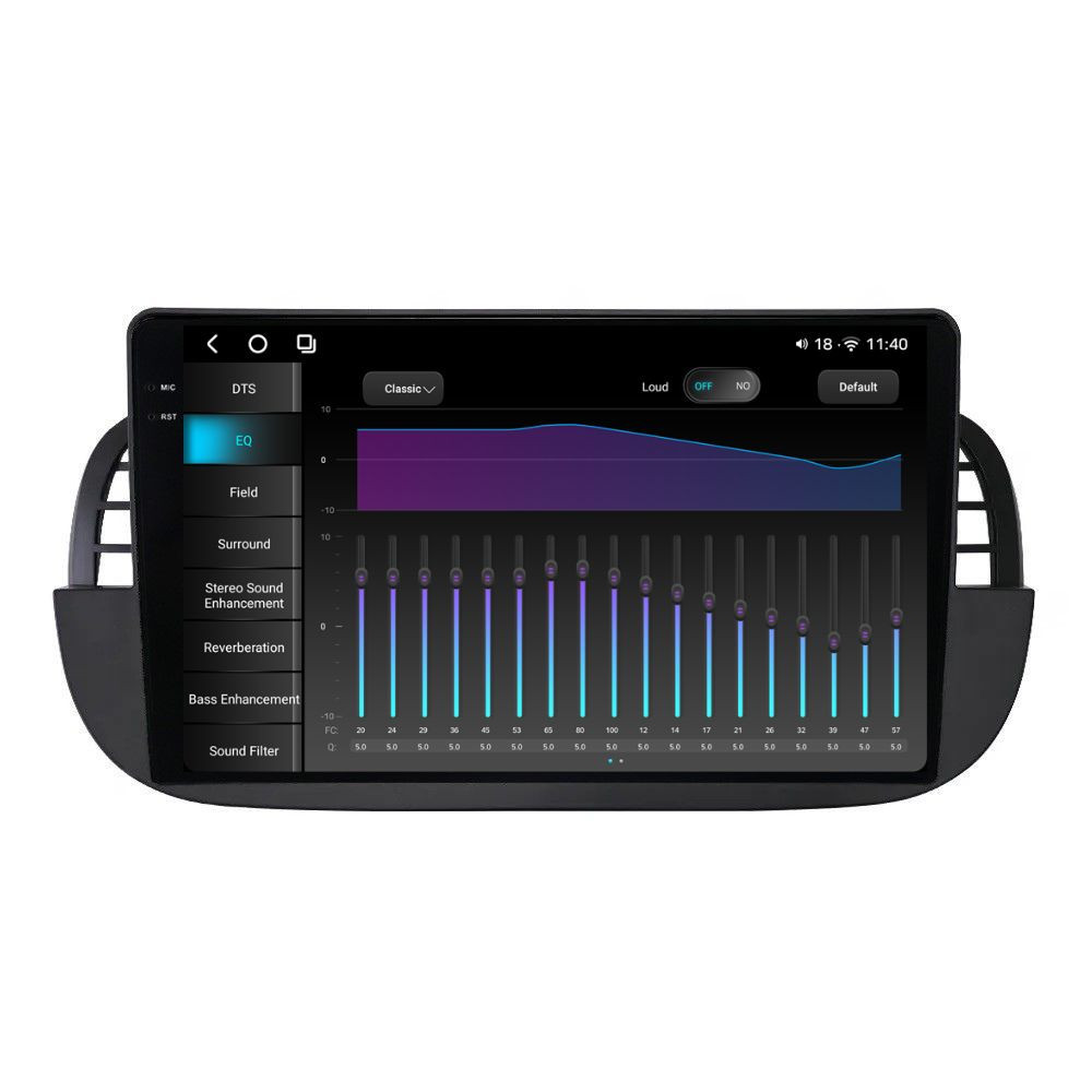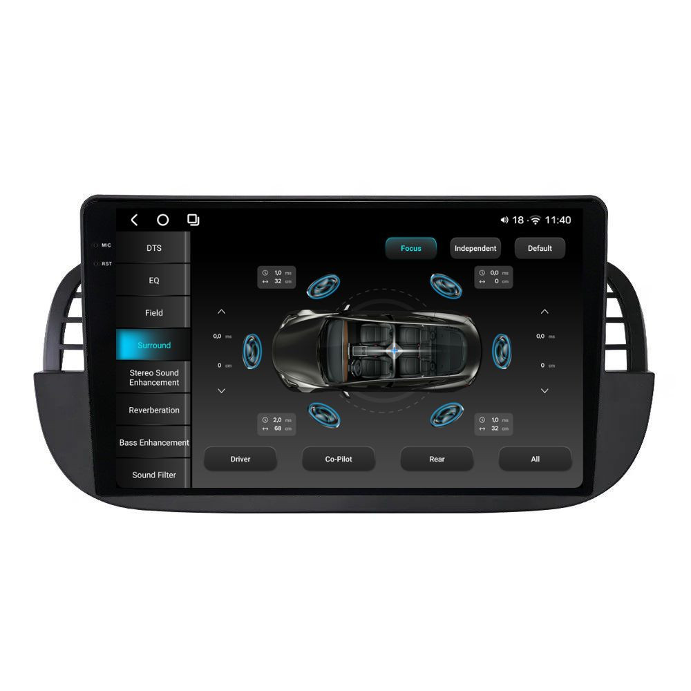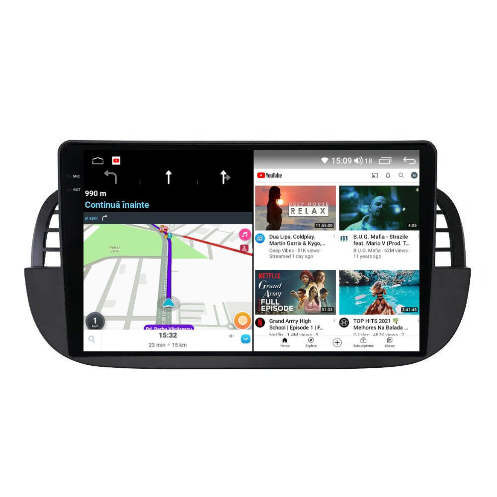 Navigatie dedicata cu Android Fiat 500 2007 - 2015, negru, 12GB RAM, Radio GPS Dual Zone, Display 2K QLED 9.5 Touchscreen, Internet Wi-Fi si slot SIM 4G, Bluetooth, MirrorLink, USB, Waze