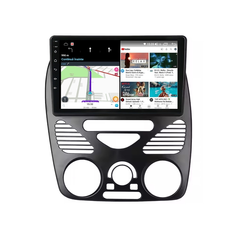 Sistem de operare: Car Android 14 cu meniu în peste 60 de limbi (inclusiv limba română) Procesor: Octa Core UIS7862S 2GHz Memorie internă: 6GB RAM + 64GB stocare (extensibilă prin 3 sloturi USB de maxim 64GB) Display: Touchscreen 9 inch QLED HD 1280x720, multi-touch, format 16:9, cu margini curbate și tehnologie 2.5D Chipset GPS: Samsung Sirf Star IV cu 48 de canale (antenă GPS inclusă) Fast Boot: Navigația pornește instant în momentul în care se pune contactul Conectivitate: Slot SIM 4G, Wi-Fi Dual Band 2.4Ghz si 5Ghz, Bluetooth, 3 x USB, RCA, AUX Plug & Play: Mufă dedicată, navigaţia preia comenzile de pe volanul maşinii şi nu descarcă bateria acesteia Cooler răcire activă: Ventilatorul integrat menține o temperatură optimă, asigurând astfel navigației o durată de viaţă mai mare Audio: 4 x 45W + ieşire subwoofer, egalizator și procesor de sunet DSP Radio: FM (87.5 - 108.0 Mhz) şi AM (522 - 1620 Khz) cu funcție RDS Dual Zone: Poţi asculta muzică şi folosi aplicaţia preferată de navigare (iGO, Waze, Maps etc.) în acelaşi timp PLUG & PLAY Navigația se potrivește perfect în bord, iar mufa este identică cu cea a maşinii. Nu ai nevoie de altă ramă şi nu trebuie să modifici instalaţia electrică. Comenzile de pe volan rămân funcţionale, iar navigaţia se va opri când iei contactul şi nu va descărca bateria maşinii. În pachet sunt incluse toate cablurile necesare montării navigaţiei, precum şi cele auxiliare (RCA, USB etc.). UNIVERSUL ANDROID ÎN CONFORTUL MAŞINII TALE Aplicaţiile preferate vin acum pe ecranul navigaţiei tale. Poţi instala orice aplicaţie din magazinul Google Play: Waze, Google Maps, YouTube, Spotify, Google Chrome, Instagram, Facebook, WhatsApp etc. Fără a mai avea nevoie de telefon, te poţi strecura prin traficul aglomerat folosind Waze sau Google Maps şi în acelaşi timp poţi asculta muzica preferată sau viziona filmele și videoclipurile favorite pe YouTube, Spotify, Apple Music etc. GPS DUAL ZONE Navigaţia dispune de un modul şi o antenă GPS de calitate superioară, care te localizează cu precizie şi te ajută să ajungi la destinaţie în cel mai scurt timp, fără a avea nevoie de telefon. Dual zone: Poţi asculta muzică în timp ce foloseşti aplicaţia preferată de navigare, vocea aplicaţiei suprapunându-se, atunci când este cazul, peste muzică. COMPATIBILĂ CU ORICE TELEFON Deşi navigaţia dispune de propriul sistem de operare Android care funcţionează independent de telefon, la aceasta se poate conecta orice telefon cu Android sau iPhone prin Bluetooth sau Wi-Fi. Poţi folosi cu uşurinţă aplicațiile instalate pe telefon prin intermediul Android Auto sau Apple CarPlay şi primeşti toate notificările de pe telefon pe ecranul navigaţiei. SLOT SIM 4G, BLUETOOTH, WI-FI ŞI MIRRORLINK INTEGRATE Spune adio amenzilor pentru folosirea telefonului la volan. Poţi descărca agenda telefonică pe navigaţie şi poţi iniţia şi prelua apeluri de pe ecranul navigaţiei, precum şi asculta muzica preferată de pe telefon. Navigaţia se conectează rapid la orice reţea wireless, inclusiv la hotspot-ul telefonului, precum și la internet 4G, introducând o cartelă cu internet în slotul SIM. Cu ajutorul tehnologiei MirrorLink poţi beneficia de funcțiile Android Auto sau Apple CarPlay. MULTIPLE INTERFEȚE DISPONIBILE Interfața navigației se poate schimba cu ușurință, aceasta având 4 teme preinstalate, astfel încat să se plieze pe stilul și gustul tau. De asemenea, o poți personaliza foarte ușor cu alte teme disponibile în aplicații de tip Car Launcher. Nu trebuie să ştii engleză pentru a putea folosi navigaţia. Poţi afişa meniul în peste 60 de limbi, inclusiv română, engleză, spaniolă sau franceză. SUPORT DVR, CAMERĂ MARȘARIER ȘI SENZORI PARCARE AFTERMARKET Niciodată nu a fost atât de simplu să parchezi. Când schimbătorul ajunge în marșarier, pe ecranul navigației se va afișa automat imaginea video din spatele mașinii, împreună cu liniile de ghidaj. Senzorii de parcare, fiind de asemenea afişaţi pe navigaţie, te vor avertiza atât vizual, cât şi acustic. Înregistrarea video realizată de camera de bord DVR te poate scăpa de amenzi sau alte situaţii neplăcute, fiind martorul tău de încredere în cazul producerii unui eveniment nedorit în trafic. SUPORT INTERFAȚĂ OBDII Un adaptor Bluetooth OBDII este de un real ajutor atunci când o eroare apare în bordul maşinii. Cu ajutorul lui poţi citi, interpreta sau șterge eventualele coduri de eroare şi îţi poţi da seama cu uşurinţă ce nu este în regulă cu maşina ta. În plus, poți afișa pe ecranul navigației informații în timp real despre starea mașinii cu ajutorul unor aplicații dedicate precum Torque sau Car Scanner. NAVIGAȚIE CU ANDROID - SISTEMUL COMPLET DE INFOTAINMENT DIN MAȘINA TA