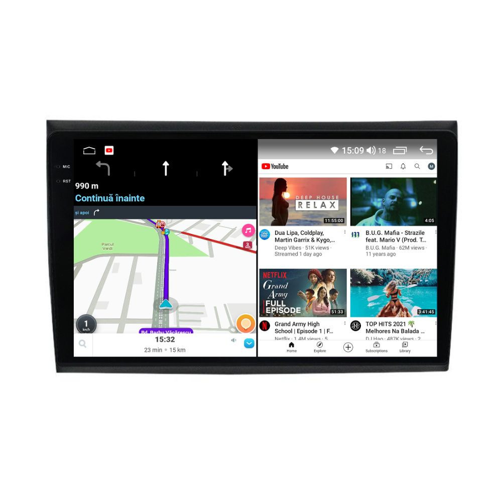 Sistem de operare: Car Android 14 cu meniu în peste 60 de limbi (inclusiv limba română) Procesor: Octa Core UIS7870S 2.7Ghz Memorie internă: 12GB RAM + 256GB stocare (extensibilă prin 3 sloturi USB de maxim 64GB) Display: Touchscreen 9.5 inch QLED 2K 2000x1200, multi-touch, format 16:9, cu margini curbate și tehnologie 2.5D Chipset GPS: Samsung Sirf Star IV cu 48 de canale (antenă GPS inclusă) Fast Boot: Navigația pornește instant în momentul în care se pune contactul Conectivitate: Slot SIM 4G, Wi-Fi Dual Band 2.4Ghz si 5Ghz, Bluetooth, 3 x USB, RCA, AUX Plug & Play: Mufă dedicată, navigaţia preia comenzile de pe volanul maşinii şi nu descarcă bateria acesteia Cooler răcire activă: Ventilatorul integrat menține o temperatură optimă, asigurând astfel navigației o durată de viaţă mai mare Control prin gesturi: Glisezi cu 2 degete în sus sau în jos pentru a modifica volumul sau în lateral pentru schimbarea melodiei Asistent virtual: Poţi controla cu ușurință navigația prin comenzi vocale cu ajutorul asistentului virtual integrat Audio: 4 x 45W + ieşire subwoofer, DTS 4.1 & 5.1, egalizator și procesor de sunet DSP Radio: FM (87.5 - 108.0 Mhz) şi AM (522 - 1620 Khz) cu funcție RDS Dual Zone: Poţi asculta muzică şi folosi aplicaţia preferată de navigare (iGO, Waze, Maps etc.) în acelaşi timp PLUG & PLAY Navigația se potrivește perfect în bord, iar mufa este identică cu cea a maşinii. Nu ai nevoie de altă ramă şi nu trebuie să modifici instalaţia electrică. Comenzile de pe volan rămân funcţionale, iar navigaţia se va opri când iei contactul şi nu va descărca bateria maşinii. În pachet sunt incluse toate cablurile necesare montării navigaţiei, precum şi cele auxiliare (RCA, USB etc.). UNIVERSUL ANDROID ÎN CONFORTUL MAŞINII TALE Aplicaţiile preferate vin acum pe ecranul navigaţiei tale. Poţi instala orice aplicaţie din magazinul Google Play: Waze, Google Maps, YouTube, Spotify, Google Chrome, Instagram, Facebook, WhatsApp etc. Fără a mai avea nevoie de telefon, te poţi strecura prin traficul aglomerat folosind Waze sau Google Maps şi în acelaşi timp poţi asculta muzica preferată sau viziona filmele și videoclipurile favorite pe YouTube, Spotify, Apple Music etc. GPS DUAL ZONE Navigaţia dispune de un modul şi o antenă GPS de calitate superioară, care te localizează cu precizie şi te ajută să ajungi la destinaţie în cel mai scurt timp, fără a avea nevoie de telefon. Dual zone: Poţi asculta muzică în timp ce foloseşti aplicaţia preferată de navigare, vocea aplicaţiei suprapunându-se, atunci când este cazul, peste muzică. COMPATIBILĂ CU ORICE TELEFON Deşi navigaţia dispune de propriul sistem de operare Android care funcţionează independent de telefon, la aceasta se poate conecta orice telefon cu Android sau iPhone prin Bluetooth sau Wi-Fi. Poţi folosi cu uşurinţă aplicațiile instalate pe telefon prin intermediul Android Auto sau Apple CarPlay şi primeşti toate notificările de pe telefon pe ecranul navigaţiei. SLOT SIM 4G, BLUETOOTH, WI-FI ŞI MIRRORLINK INTEGRATE Spune adio amenzilor pentru folosirea telefonului la volan. Poţi descărca agenda telefonică pe navigaţie şi poţi iniţia şi prelua apeluri de pe ecranul navigaţiei, precum şi asculta muzica preferată de pe telefon. Navigaţia se conectează rapid la orice reţea wireless, inclusiv la hotspot-ul telefonului, precum și la internet 4G, introducând o cartelă cu internet în slotul SIM. Cu ajutorul tehnologiei MirrorLink poţi beneficia de funcțiile Android Auto sau Apple CarPlay. MULTIPLE INTERFEȚE DISPONIBILE Interfața navigației se poate schimba cu ușurință, aceasta având 4 teme preinstalate, astfel încat să se plieze pe stilul și gustul tau. De asemenea, o poți personaliza foarte ușor cu alte teme disponibile în aplicații de tip Car Launcher. Nu trebuie să ştii engleză pentru a putea folosi navigaţia. Poţi afişa meniul în peste 60 de limbi, inclusiv română, engleză, spaniolă sau franceză. SUPORT DVR, CAMERĂ MARȘARIER ȘI SENZORI PARCARE AFTERMARKET Niciodată nu a fost atât de simplu să parchezi. Când schimbătorul ajunge în marșarier, pe ecranul navigației se va afișa automat imaginea video din spatele mașinii, împreună cu liniile de ghidaj. Senzorii de parcare, fiind de asemenea afişaţi pe navigaţie, te vor avertiza atât vizual, cât şi acustic. Înregistrarea video realizată de camera de bord DVR te poate scăpa de amenzi sau alte situaţii neplăcute, fiind martorul tău de încredere în cazul producerii unui eveniment nedorit în trafic. SUPORT INTERFAȚĂ OBDII Un adaptor Bluetooth OBDII este de un real ajutor atunci când o eroare apare în bordul maşinii. Cu ajutorul lui poţi citi, interpreta sau șterge eventualele coduri de eroare şi îţi poţi da seama cu uşurinţă ce nu este în regulă cu maşina ta. În plus, poți afișa pe ecranul navigației informații în timp real despre starea mașinii cu ajutorul unor aplicații dedicate precum Torque sau Car Scanner. NAVIGAȚIE CU ANDROID - SISTEMUL COMPLET DE INFOTAINMENT DIN MAȘINA TA