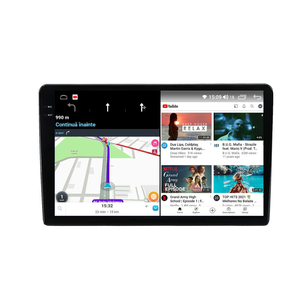 Sistem de operare: Car Android 14 cu meniu în peste 60 de limbi (inclusiv limba română) Procesor: Octa Core UIS7862S 2GHz Memorie internă: 4GB RAM + 32GB stocare (extensibilă prin 3 sloturi USB de maxim 64GB) Display: Touchscreen 9.5 inch QLED 2K 2000x1200, multi-touch, format 16:9, cu margini curbate și tehnologie 2.5D Chipset GPS: Samsung Sirf Star IV cu 48 de canale (antenă GPS inclusă) Fast Boot: Navigația pornește instant în momentul în care se pune contactul Conectivitate: Slot SIM 4G, Wi-Fi Dual Band 2.4Ghz si 5Ghz, Bluetooth, 3 x USB, RCA, AUX Plug & Play: Mufă dedicată, navigaţia preia comenzile de pe volanul maşinii şi nu descarcă bateria acesteia Cooler răcire activă: Ventilatorul integrat menține o temperatură optimă, asigurând astfel navigației o durată de viaţă mai mare Control prin gesturi: Glisezi cu 2 degete în sus sau în jos pentru a modifica volumul sau în lateral pentru schimbarea melodiei Audio: 4 x 45W + ieşire subwoofer, egalizator și procesor de sunet DSP Radio: FM (87.5 - 108.0 Mhz) şi AM (522 - 1620 Khz) cu funcție RDS Dual Zone: Poţi asculta muzică şi folosi aplicaţia preferată de navigare (iGO, Waze, Maps etc.) în acelaşi timp PLUG & PLAY Navigația se potrivește perfect în bord, iar mufa este identică cu cea a maşinii. Nu ai nevoie de altă ramă şi nu trebuie să modifici instalaţia electrică. Comenzile de pe volan rămân funcţionale, iar navigaţia se va opri când iei contactul şi nu va descărca bateria maşinii. În pachet sunt incluse toate cablurile necesare montării navigaţiei, precum şi cele auxiliare (RCA, USB etc.). UNIVERSUL ANDROID ÎN CONFORTUL MAŞINII TALE Aplicaţiile preferate vin acum pe ecranul navigaţiei tale. Poţi instala orice aplicaţie din magazinul Google Play: Waze, Google Maps, YouTube, Spotify, Google Chrome, Instagram, Facebook, WhatsApp etc. Fără a mai avea nevoie de telefon, te poţi strecura prin traficul aglomerat folosind Waze sau Google Maps şi în acelaşi timp poţi asculta muzica preferată sau viziona filmele și videoclipurile favorite pe YouTube, Spotify, Apple Music etc. GPS DUAL ZONE Navigaţia dispune de un modul şi o antenă GPS de calitate superioară, care te localizează cu precizie şi te ajută să ajungi la destinaţie în cel mai scurt timp, fără a avea nevoie de telefon. Dual zone: Poţi asculta muzică în timp ce foloseşti aplicaţia preferată de navigare, vocea aplicaţiei suprapunându-se, atunci când este cazul, peste muzică. COMPATIBILĂ CU ORICE TELEFON Deşi navigaţia dispune de propriul sistem de operare Android care funcţionează independent de telefon, la aceasta se poate conecta orice telefon cu Android sau iPhone prin Bluetooth sau Wi-Fi. Poţi folosi cu uşurinţă aplicațiile instalate pe telefon prin intermediul Android Auto sau Apple CarPlay şi primeşti toate notificările de pe telefon pe ecranul navigaţiei. SLOT SIM 4G, BLUETOOTH, WI-FI ŞI MIRRORLINK INTEGRATE Spune adio amenzilor pentru folosirea telefonului la volan. Poţi descărca agenda telefonică pe navigaţie şi poţi iniţia şi prelua apeluri de pe ecranul navigaţiei, precum şi asculta muzica preferată de pe telefon. Navigaţia se conectează rapid la orice reţea wireless, inclusiv la hotspot-ul telefonului, precum și la internet 4G, introducând o cartelă cu internet în slotul SIM. Cu ajutorul tehnologiei MirrorLink poţi beneficia de funcțiile Android Auto sau Apple CarPlay. MULTIPLE INTERFEȚE DISPONIBILE Interfața navigației se poate schimba cu ușurință, aceasta având 4 teme preinstalate, astfel încat să se plieze pe stilul și gustul tau. De asemenea, o poți personaliza foarte ușor cu alte teme disponibile în aplicații de tip Car Launcher. Nu trebuie să ştii engleză pentru a putea folosi navigaţia. Poţi afişa meniul în peste 60 de limbi, inclusiv română, engleză, spaniolă sau franceză. SUPORT DVR, CAMERĂ MARȘARIER ȘI SENZORI PARCARE AFTERMARKET Niciodată nu a fost atât de simplu să parchezi. Când schimbătorul ajunge în marșarier, pe ecranul navigației se va afișa automat imaginea video din spatele mașinii, împreună cu liniile de ghidaj. Senzorii de parcare, fiind de asemenea afişaţi pe navigaţie, te vor avertiza atât vizual, cât şi acustic. Înregistrarea video realizată de camera de bord DVR te poate scăpa de amenzi sau alte situaţii neplăcute, fiind martorul tău de încredere în cazul producerii unui eveniment nedorit în trafic. SUPORT INTERFAȚĂ OBDII Un adaptor Bluetooth OBDII este de un real ajutor atunci când o eroare apare în bordul maşinii. Cu ajutorul lui poţi citi, interpreta sau șterge eventualele coduri de eroare şi îţi poţi da seama cu uşurinţă ce nu este în regulă cu maşina ta. În plus, poți afișa pe ecranul navigației informații în timp real despre starea mașinii cu ajutorul unor aplicații dedicate precum Torque sau Car Scanner. NAVIGAȚIE CU ANDROID - SISTEMUL COMPLET DE INFOTAINMENT DIN MAȘINA TA