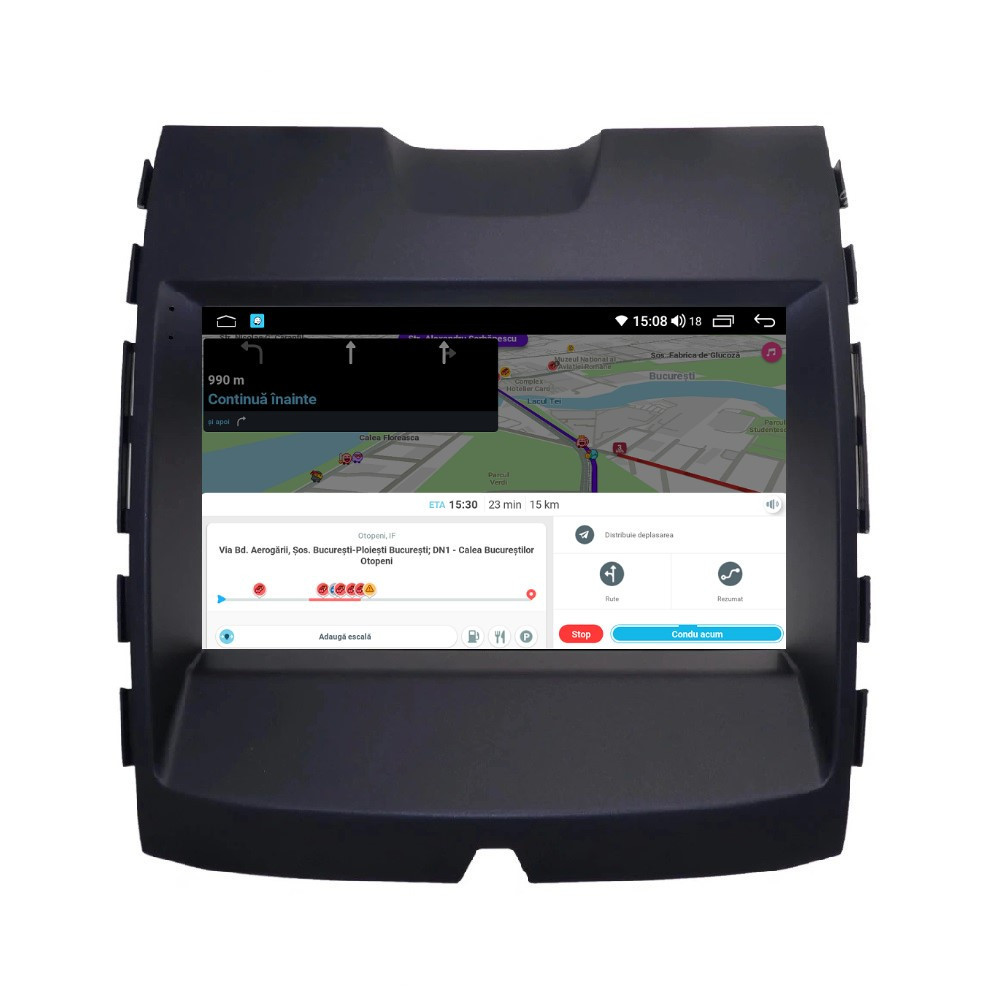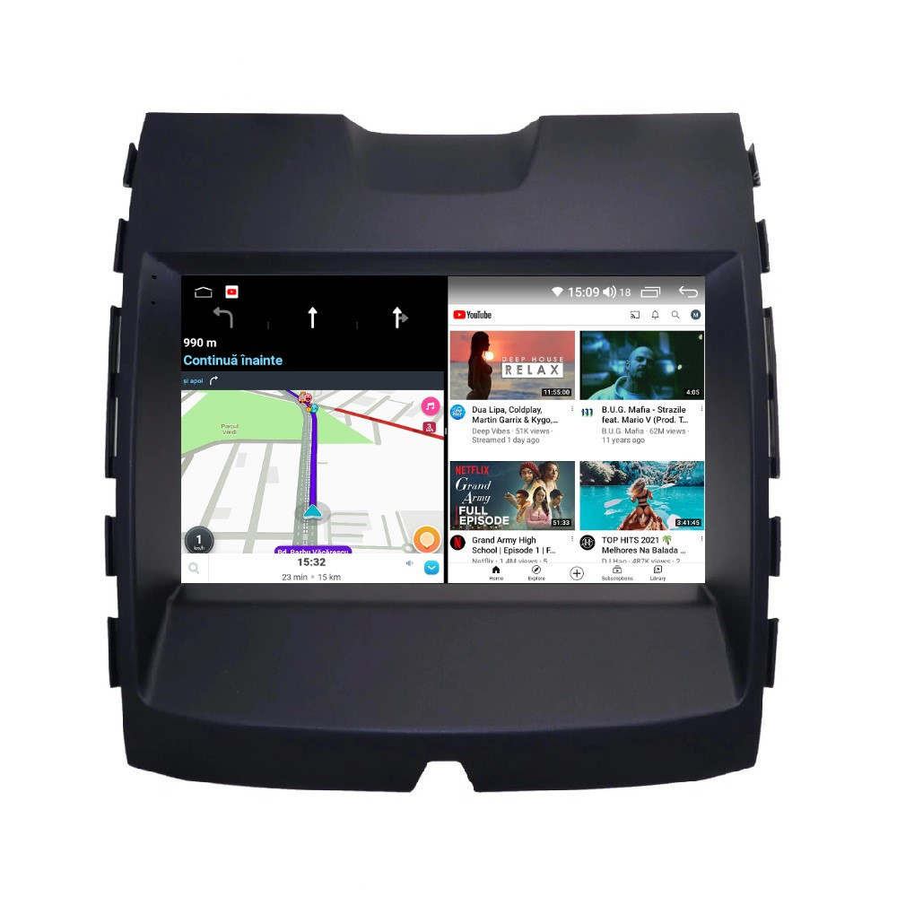 Navigatie dedicata cu Android Ford Edge 2016 - 2021 cu navigatie originala, 3GB RAM, Radio GPS Dual Zone, Display HD QLED 9 Touchscreen, Internet Wi-Fi si slot SIM 4G, Bluetooth, MirrorLink, USB, Waze