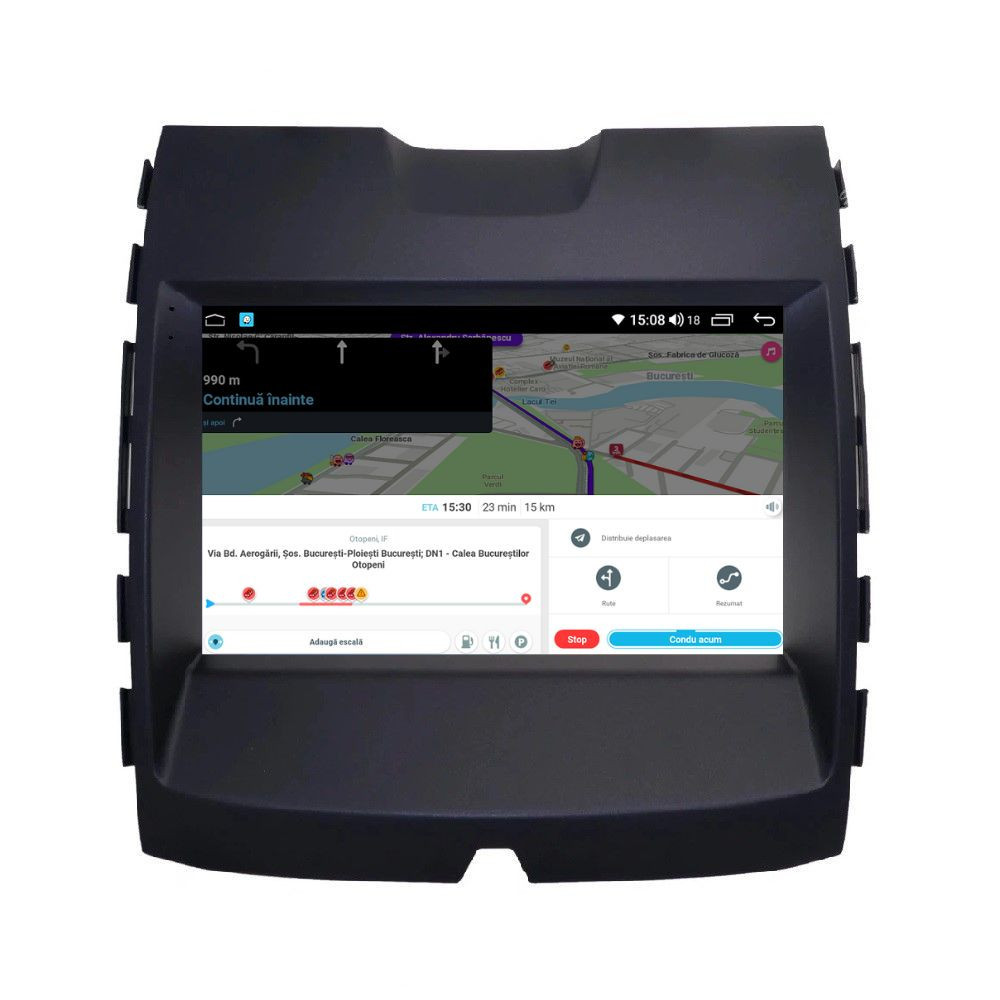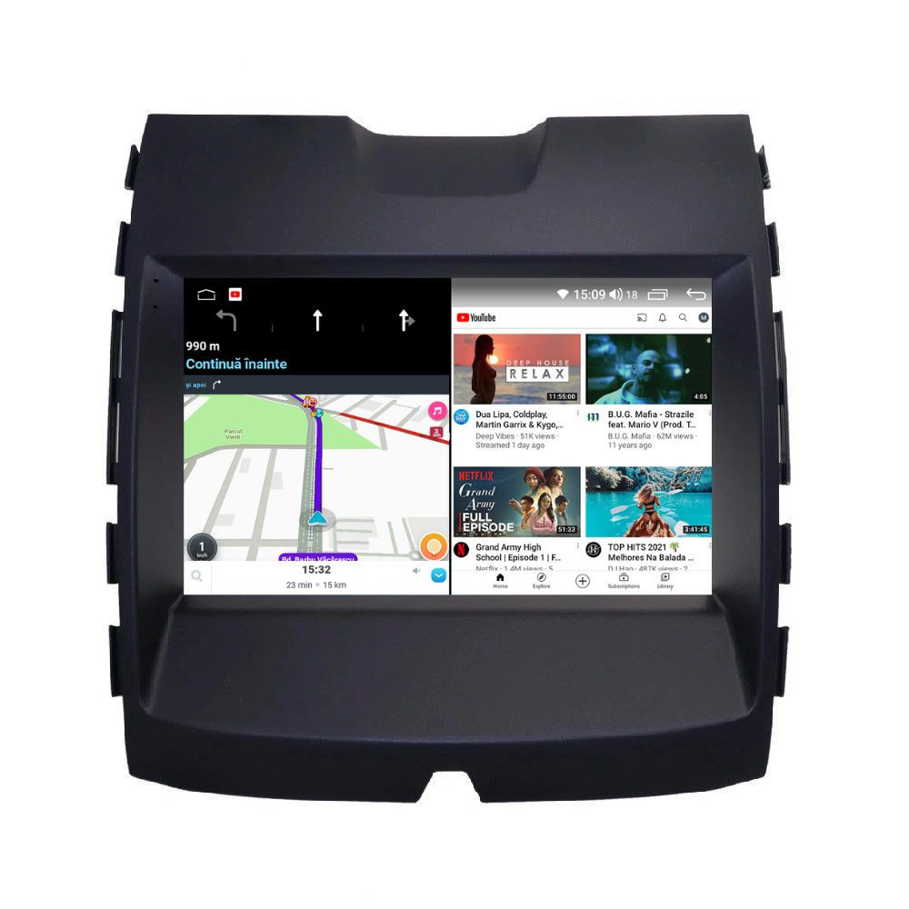 Navigatie dedicata cu Android Ford Edge 2016 - 2021 cu navigatie originala, 4GB RAM, Radio GPS Dual Zone, Display 2K QLED 9.5 Touchscreen, Internet Wi-Fi si slot SIM 4G, Bluetooth, MirrorLink, USB, Waze