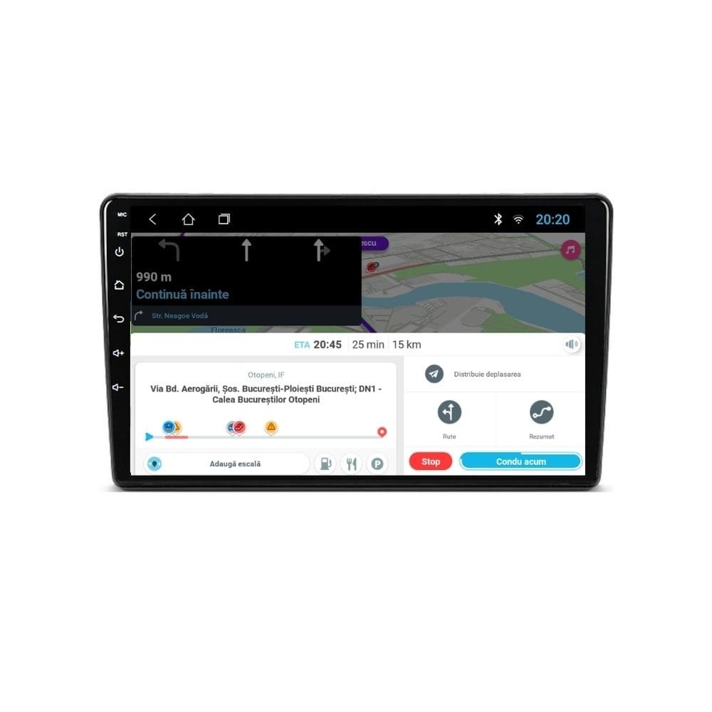 Sistem de operare: Car Android 14 cu meniu în peste 60 de limbi (inclusiv limba română) Procesor: Quad Core ARM Cortex-A7 1.3Ghz Memorie internă: 1GB RAM + 32GB stocare (extensibilă prin 2 sloturi USB de maxim 64GB) Display: Touchscreen 9 inch IPS HD 1280x720, multi-touch, format 16:9, cu margini curbate și tehnologie 2.5D Chipset GPS: Samsung Sirf Star IV cu 48 de canale (antenă GPS inclusă) Conectivitate: Wi-Fi, Bluetooth, 2 x USB, RCA, AUX Plug & Play: Mufă dedicată, navigaţia preia comenzile de pe volanul maşinii şi nu descarcă bateria acesteia Cooler răcire activă: Ventilatorul integrat menține o temperatură optimă, asigurând astfel navigației o durată de viaţă mai mare Audio: 4 x 45W + ieşire subwoofer Radio: FM 87.5 - 108.0 Mhz Dual Zone: Poţi asculta muzică şi folosi aplicaţia preferată de navigare (iGO, Waze, Maps etc.) în acelaşi timp PLUG & PLAY Navigația se potrivește perfect în bord, iar mufa este identică cu cea a maşinii. Nu ai nevoie de altă ramă şi nu trebuie să modifici instalaţia electrică. Comenzile de pe volan rămân funcţionale, iar navigaţia se va opri când iei contactul şi nu va descărca bateria maşinii. În pachet sunt incluse toate cablurile necesare montării navigaţiei, precum şi cele auxiliare (RCA, USB etc.). UNIVERSUL ANDROID ÎN CONFORTUL MAŞINII TALE Aplicaţiile preferate vin acum pe ecranul navigaţiei tale. Poţi instala orice aplicaţie din magazinul Google Play: Waze, Google Maps, YouTube, Spotify, Google Chrome, Instagram, Facebook, WhatsApp etc. Fără a mai avea nevoie de telefon, te poţi strecura prin traficul aglomerat folosind Waze sau Google Maps şi în acelaşi timp poţi asculta muzica preferată sau viziona filmele și videoclipurile favorite pe YouTube, Spotify, Apple Music etc. GPS DUAL ZONE Navigaţia dispune de un modul şi o antenă GPS de calitate superioară, care te localizează cu precizie şi te ajută să ajungi la destinaţie în cel mai scurt timp, fără a avea nevoie de telefon. Dual zone: Poţi asculta muzică în timp ce foloseşti aplicaţia preferată de navigare, vocea aplicaţiei suprapunându-se, atunci când este cazul, peste muzică. COMPATIBILĂ CU ORICE TELEFON Deşi navigaţia dispune de propriul sistem de operare Android care funcţionează independent de telefon, la aceasta se poate conecta orice telefon cu Android sau iPhone prin Bluetooth sau Wi-Fi. Poţi folosi cu uşurinţă orice aplicaţie instalată pe telefon fără a o instala şi pe navigaţie şi primeşti toate notificările de pe telefon direct pe ecranul navigaţiei. BLUETOOTH, WI-FI ŞI MIRRORLINK INTEGRATE Spune adio amenzilor pentru folosirea telefonului la volan. Poţi descărca contactele din telefon pe navigaţie şi poţi iniţia şi prelua apeluri direct de pe ecranul navigaţiei, precum şi asculta muzica preferată de pe telefon. Navigaţia se conectează rapid la orice reţea wireless, inclusiv la hotspot-ul telefonului, iar cu ajutorul tehnologiei MirrorLink poţi oglindi imaginea telefonului pe navigaţie. MULTIPLE INTERFEȚE DISPONIBILE Interfața navigației se poate schimba cu ușurință, aceasta având 4 teme preinstalate, astfel încat să se plieze pe stilul și gustul tau. De asemenea, o poți personaliza foarte ușor cu alte teme disponibile în aplicații de tip Car Launcher. Nu trebuie să ştii engleză pentru a putea folosi navigaţia. Poţi afişa meniul în peste 60 de limbi, inclusiv română, engleză, spaniolă sau franceză. SUPORT DVR, CAMERĂ MARȘARIER ȘI SENZORI PARCARE AFTERMARKET Niciodată nu a fost atât de simplu să parchezi. Când schimbătorul ajunge în marșarier, pe ecranul navigației se va afișa automat imaginea video din spatele mașinii, împreună cu liniile de ghidaj. Senzorii de parcare, fiind de asemenea afişaţi pe navigaţie, te vor avertiza atât vizual, cât şi acustic. Înregistrarea video realizată de camera de bord DVR te poate scăpa de amenzi sau alte situaţii neplăcute, fiind martorul tău de încredere în cazul producerii unui eveniment nedorit în trafic. SUPORT INTERFAȚĂ OBDII Un adaptor Bluetooth OBDII este de un real ajutor atunci când o eroare apare în bordul maşinii. Cu ajutorul lui poţi citi, interpreta sau șterge eventualele coduri de eroare şi îţi poţi da seama cu uşurinţă ce nu este în regulă cu maşina ta. În plus, poți afișa pe ecranul navigației informații în timp real despre starea mașinii cu ajutorul unor aplicații dedicate precum Torque sau Car Scanner. NAVIGAȚIE CU ANDROID - SISTEMUL COMPLET DE INFOTAINMENT DIN MAȘINA TA