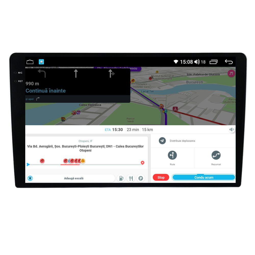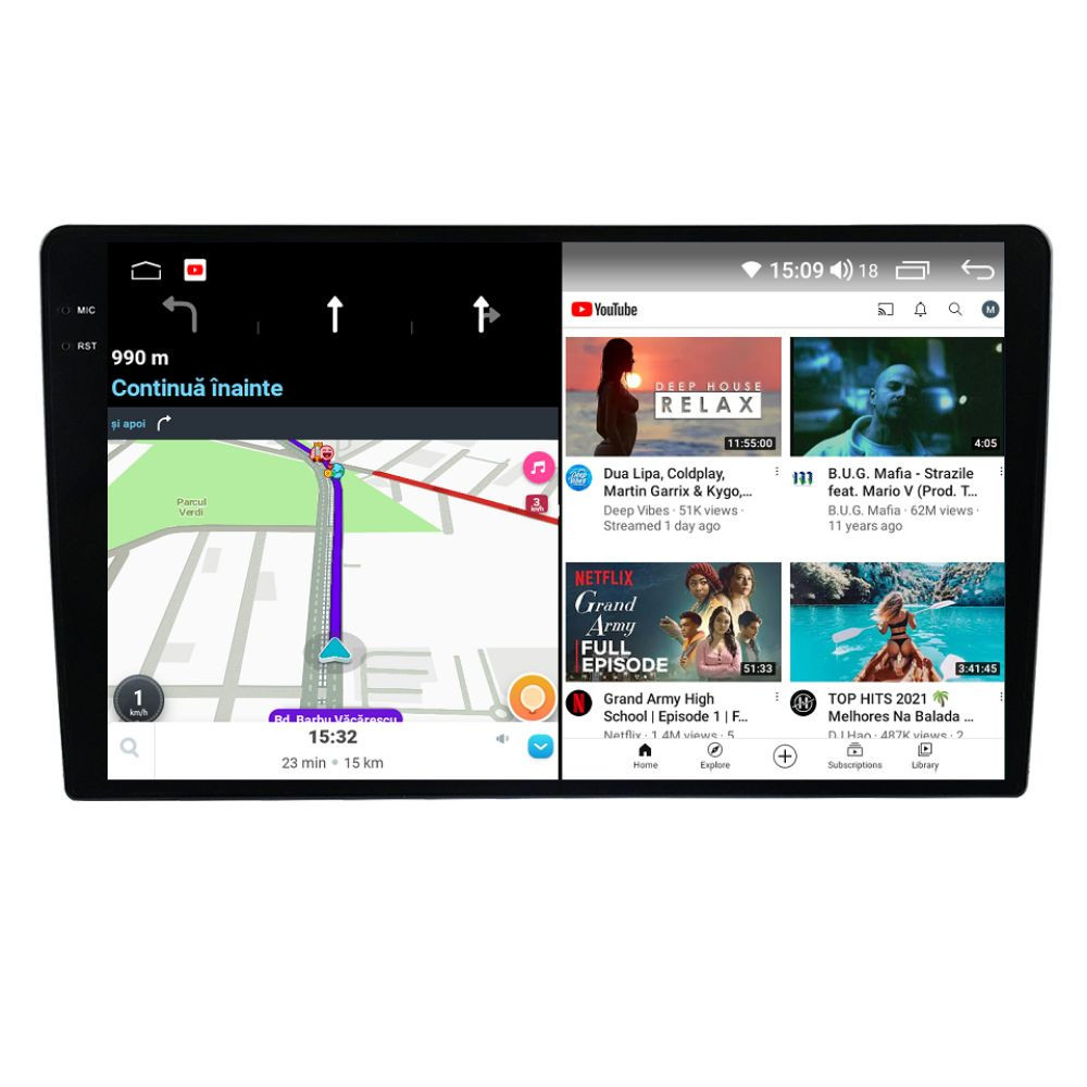 Sistem de operare: Car Android 14 cu meniu în peste 60 de limbi (inclusiv limba română) Procesor: Octa Core UIS7862S 2GHz Memorie internă: 4GB RAM + 32GB stocare (extensibilă prin 3 sloturi USB de maxim 64GB) Display: Touchscreen 9.5 inch QLED 2K 2000x1200, multi-touch, format 16:9, cu margini curbate și tehnologie 2.5D Chipset GPS: Samsung Sirf Star IV cu 48 de canale (antenă GPS inclusă) Fast Boot: Navigația pornește instant în momentul în care se pune contactul Conectivitate: Slot SIM 4G, Wi-Fi Dual Band 2.4Ghz si 5Ghz, Bluetooth, 3 x USB, RCA, AUX Plug & Play: Mufă dedicată, navigaţia preia comenzile de pe volanul maşinii şi nu descarcă bateria acesteia Cooler răcire activă: Ventilatorul integrat menține o temperatură optimă, asigurând astfel navigației o durată de viaţă mai mare Control prin gesturi: Glisezi cu 2 degete în sus sau în jos pentru a modifica volumul sau în lateral pentru schimbarea melodiei Audio: 4 x 45W + ieşire subwoofer, egalizator și procesor de sunet DSP Radio: FM (87.5 - 108.0 Mhz) şi AM (522 - 1620 Khz) cu funcție RDS Dual Zone: Poţi asculta muzică şi folosi aplicaţia preferată de navigare (iGO, Waze, Maps etc.) în acelaşi timp PLUG & PLAY Navigația se potrivește perfect în bord, iar mufa de alimentare este identică cu cea a maşinii. Nu ai nevoie de ramă adaptoare şi nici nu trebuie să modifici instalaţia electrică. Comenzile de pe volan rămân funcţionale, iar navigaţia se va opri când iei contactul şi nu va descărca bateria maşinii. În pachet sunt incluse toate cablurile necesare montării navigaţiei, precum şi cele auxiliare (RCA, USB etc.). UNIVERSUL ANDROID ÎN CONFORTUL MAŞINII TALE Aplicaţiile preferate vin acum pe ecranul navigaţiei tale. Poţi instala orice aplicaţie din magazinul Google Play: Waze, Google Maps, YouTube, Spotify, Google Chrome, Instagram, Facebook, WhatsApp etc. Fără a mai avea nevoie de telefon, te poţi strecura prin traficul aglomerat folosind Waze sau Google Maps şi în acelaşi timp poţi asculta muzica preferată sau viziona filmele și videoclipurile favorite pe YouTube, Spotify, Apple Music etc. GPS DUAL ZONE Navigaţia dispune de un modul şi o antenă GPS de calitate superioară, care te localizează cu precizie şi te ajută să ajungi la destinaţie în cel mai scurt timp, fără a avea nevoie de telefon. Dual zone: Poţi asculta muzică în timp ce foloseşti aplicaţia preferată de navigare, vocea aplicaţiei suprapunându-se, atunci când este cazul, peste muzică. COMPATIBILĂ CU ORICE TELEFON Deşi navigaţia dispune de propriul sistem de operare Android care funcţionează independent de telefon, la aceasta se poate conecta orice telefon cu Android sau iPhone prin Bluetooth sau Wi-Fi. Poţi folosi cu uşurinţă aplicațiile instalate pe telefon prin intermediul Android Auto sau Apple CarPlay şi primeşti toate notificările de pe telefon pe ecranul navigaţiei. SLOT SIM 4G, BLUETOOTH, WI-FI ŞI MIRRORLINK INTEGRATE Spune adio amenzilor pentru folosirea telefonului la volan. Poţi descărca agenda telefonică pe navigaţie şi poţi iniţia şi prelua apeluri de pe ecranul navigaţiei, precum şi asculta muzica preferată de pe telefon. Navigaţia se conectează rapid la orice reţea wireless, inclusiv la hotspot-ul telefonului, precum și la internet 4G, introducând o cartelă cu internet în slotul SIM. Cu ajutorul tehnologiei MirrorLink poţi beneficia de funcțiile Android Auto sau Apple CarPlay. MULTIPLE INTERFEȚE DISPONIBILE Interfața navigației se poate schimba cu ușurință, aceasta având 4 teme preinstalate, astfel încat să se plieze pe stilul și gustul tau. De asemenea, o poți personaliza foarte ușor cu alte teme disponibile în aplicații de tip Car Launcher. Nu trebuie să ştii engleză pentru a putea folosi navigaţia. Poţi afişa meniul în peste 60 de limbi, inclusiv română, engleză, spaniolă sau franceză. SUPORT DVR, CAMERĂ MARȘARIER ȘI SENZORI PARCARE AFTERMARKET Niciodată nu a fost atât de simplu să parchezi. Când schimbătorul ajunge în marșarier, pe ecranul navigației se va afișa automat imaginea video din spatele mașinii, împreună cu liniile de ghidaj. Senzorii de parcare, fiind de asemenea afişaţi pe navigaţie, te vor avertiza atât vizual, cât şi acustic. Înregistrarea video realizată de camera de bord DVR te poate scăpa de amenzi sau alte situaţii neplăcute, fiind martorul tău de încredere în cazul producerii unui eveniment nedorit în trafic. SUPORT INTERFAȚĂ OBDII Un adaptor Bluetooth OBDII este de un real ajutor atunci când o eroare apare în bordul maşinii. Cu ajutorul lui poţi citi, interpreta sau șterge eventualele coduri de eroare şi îţi poţi da seama cu uşurinţă ce nu este în regulă cu maşina ta. În plus, poți afișa pe ecranul navigației informații în timp real despre starea mașinii cu ajutorul unor aplicații dedicate precum Torque sau Car Scanner. NAVIGAȚIE CU ANDROID - SISTEMUL COMPLET DE INFOTAINMENT DIN MAȘINA TA