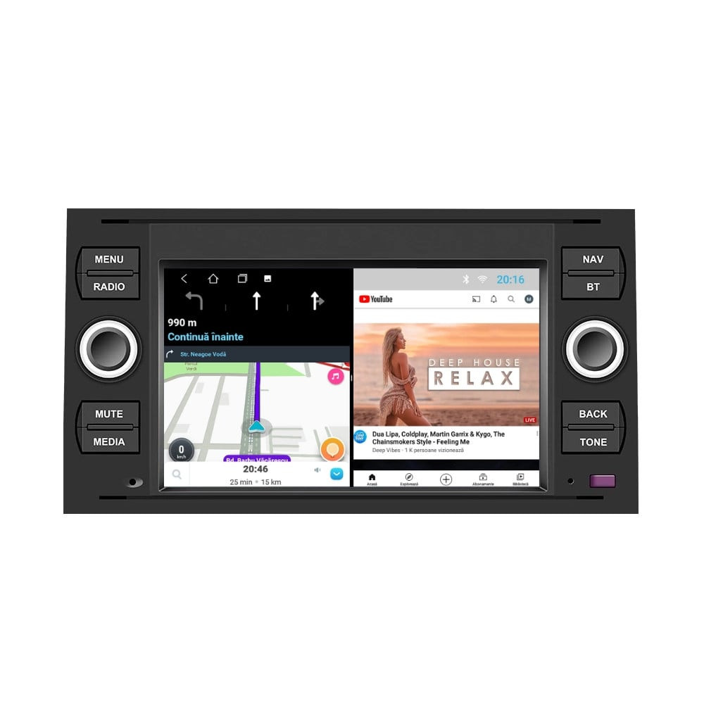 Sistem de operare: Car Android 14 cu meniu în peste 60 de limbi (inclusiv limba română) Procesor: Quad Core ARM Cortex-A7 1.2Ghz Memorie internă: 2GB RAM + 32GB stocare (extensibilă prin 2 sloturi USB de maxim 64GB) Display: Touchscreen 7 inch HD 1024x600, multi-touch, format 16:9 Chipset GPS: Samsung Sirf Star IV cu 48 de canale (antenă GPS inclusă) Conectivitate: Wi-Fi, Bluetooth, 2 x USB, RCA, AUX Plug & Play: Mufă dedicată, navigaţia preia comenzile de pe volanul maşinii şi nu descarcă bateria acesteia Audio: 4 x 45W + ieşire subwoofer Radio: FM 87.5 - 108.0 Mhz Dual Zone: Poţi asculta muzică şi folosi aplicaţia preferată de navigare (iGO, Waze, Maps etc.) în acelaşi timp PLUG & PLAY Navigația se potrivește perfect în bord, iar mufa de alimentare este identică cu cea a maşinii. Nu ai nevoie de ramă adaptoare şi nici nu trebuie să modifici instalaţia electrică. Comenzile de pe volan rămân funcţionale, iar navigaţia se va opri când iei contactul şi nu va descărca bateria maşinii. În pachet sunt incluse toate cablurile necesare montării navigaţiei, precum şi cele auxiliare (RCA, USB etc.). UNIVERSUL ANDROID ÎN CONFORTUL MAŞINII TALE Aplicaţiile preferate vin acum pe ecranul navigaţiei tale. Poţi instala orice aplicaţie din magazinul Google Play: Waze, Google Maps, YouTube, Spotify, Google Chrome, Instagram, Facebook, WhatsApp etc. Fără a mai avea nevoie de telefon, te poţi strecura prin traficul aglomerat folosind Waze sau Google Maps şi în acelaşi timp poţi asculta muzica preferată sau viziona filmele și videoclipurile favorite pe YouTube, Spotify, Apple Music etc. GPS DUAL ZONE Navigaţia dispune de un modul şi o antenă GPS de calitate superioară, care te localizează cu precizie şi te ajută să ajungi la destinaţie în cel mai scurt timp, fără a avea nevoie de telefon. Dual zone: Poţi asculta muzică în timp ce foloseşti aplicaţia preferată de navigare, vocea aplicaţiei suprapunându-se, atunci când este cazul, peste muzică. COMPATIBILĂ CU ORICE TELEFON Deşi navigaţia dispune de propriul sistem de operare Android care funcţionează independent de telefon, la aceasta se poate conecta orice telefon cu Android sau iPhone prin Bluetooth sau Wi-Fi. Poţi folosi cu uşurinţă orice aplicaţie instalată pe telefon fără a o instala şi pe navigaţie şi primeşti toate notificările de pe telefon direct pe ecranul navigaţiei. BLUETOOTH, WI-FI ŞI MIRRORLINK INTEGRATE Spune adio amenzilor pentru folosirea telefonului la volan. Poţi descărca contactele din telefon pe navigaţie şi poţi iniţia şi prelua apeluri direct de pe ecranul navigaţiei, precum şi asculta muzica preferată de pe telefon. Navigaţia se conectează rapid la orice reţea wireless, inclusiv la hotspot-ul telefonului, iar cu ajutorul tehnologiei MirrorLink poţi oglindi imaginea telefonului pe navigaţie. PESTE 60 DE LIMBI DISPONIBILE Nu trebuie să ştii engleză pentru a folosi navigaţia. Poţi afişa meniul în peste 60 de limbi, inclusiv română, engleză, spaniolă sau franceză. Interfaţa navigației se îmbunătățește în mod constant pentru a-ți oferi o experiență de utilizare cât mai plăcută și fluidă. Aceasta se poate personaliza cu alte teme disponibile în aplicații de tip Car Launcher. SUPORT DVR, CAMERĂ MARȘARIER ȘI SENZORI PARCARE AFTERMARKET Niciodată nu a fost atât de simplu să parchezi. Când schimbătorul ajunge în marșarier, pe ecranul navigației se va afișa automat imaginea video din spatele mașinii, împreună cu liniile de ghidaj. Senzorii de parcare, fiind de asemenea afişaţi pe navigaţie, te vor avertiza atât vizual, cât şi acustic. Înregistrarea video realizată de camera de bord DVR te poate scăpa de amenzi sau alte situaţii neplăcute, fiind martorul tău de încredere în cazul producerii unui eveniment nedorit în trafic. SUPORT INTERFAȚĂ OBDII Un adaptor Bluetooth OBDII este de un real ajutor atunci când o eroare apare în bordul maşinii. Cu ajutorul lui poţi citi, interpreta sau șterge eventualele coduri de eroare şi îţi poţi da seama cu uşurinţă ce nu este în regulă cu maşina ta. În plus, poți afișa pe ecranul navigației informații în timp real despre starea mașinii cu ajutorul unor aplicații dedicate precum Torque sau Car Scanner. NAVIGAȚIE CU ANDROID - SISTEMUL COMPLET DE INFOTAINMENT DIN MAȘINA TA