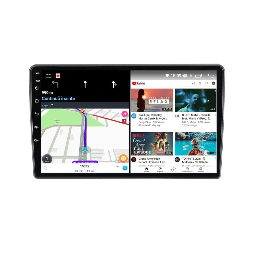 Sistem de operare: Car Android 14 cu meniu în peste 60 de limbi (inclusiv limba română) Procesor: Octa Core UIS7862S 2GHz Memorie internă: 4GB RAM + 32GB stocare (extensibilă prin 3 sloturi USB de maxim 64GB) Display: Touchscreen 10 inch QLED HD 1280x720, multi-touch, format 16:9, cu margini curbate și tehnologie 2.5D Chipset GPS: Samsung Sirf Star IV cu 48 de canale (antenă GPS inclusă) Fast Boot: Navigația pornește instant în momentul în care se pune contactul Conectivitate: Slot SIM 4G, Wi-Fi Dual Band 2.4Ghz si 5Ghz, Bluetooth, 3 x USB, RCA, AUX Plug & Play: Mufă dedicată, navigaţia preia comenzile de pe volanul maşinii şi nu descarcă bateria acesteia Cooler răcire activă: Ventilatorul integrat menține o temperatură optimă, asigurând astfel navigației o durată de viaţă mai mare Audio: 4 x 45W + ieşire subwoofer, egalizator și procesor de sunet DSP Radio: FM (87.5 - 108.0 Mhz) şi AM (522 - 1620 Khz) cu funcție RDS Dual Zone: Poţi asculta muzică şi folosi aplicaţia preferată de navigare (iGO, Waze, Maps etc.) în acelaşi timp PLUG & PLAY Navigația se potrivește perfect în bord, iar mufa este identică cu cea a maşinii. Nu ai nevoie de altă ramă şi nu trebuie să modifici instalaţia electrică. Comenzile de pe volan rămân funcţionale, iar navigaţia se va opri când iei contactul şi nu va descărca bateria maşinii. În pachet sunt incluse toate cablurile necesare montării navigaţiei, precum şi cele auxiliare (RCA, USB etc.). UNIVERSUL ANDROID ÎN CONFORTUL MAŞINII TALE Aplicaţiile preferate vin acum pe ecranul navigaţiei tale. Poţi instala orice aplicaţie din magazinul Google Play: Waze, Google Maps, YouTube, Spotify, Google Chrome, Instagram, Facebook, WhatsApp etc. Fără a mai avea nevoie de telefon, te poţi strecura prin traficul aglomerat folosind Waze sau Google Maps şi în acelaşi timp poţi asculta muzica preferată sau viziona filmele și videoclipurile favorite pe YouTube, Spotify, Apple Music etc. GPS DUAL ZONE Navigaţia dispune de un modul şi o antenă GPS de calitate superioară, care te localizează cu precizie şi te ajută să ajungi la destinaţie în cel mai scurt timp, fără a avea nevoie de telefon. Dual zone: Poţi asculta muzică în timp ce foloseşti aplicaţia preferată de navigare, vocea aplicaţiei suprapunându-se, atunci când este cazul, peste muzică. COMPATIBILĂ CU ORICE TELEFON Deşi navigaţia dispune de propriul sistem de operare Android care funcţionează independent de telefon, la aceasta se poate conecta orice telefon cu Android sau iPhone prin Bluetooth sau Wi-Fi. Poţi folosi cu uşurinţă aplicațiile instalate pe telefon prin intermediul Android Auto sau Apple CarPlay şi primeşti toate notificările de pe telefon pe ecranul navigaţiei. SLOT SIM 4G, BLUETOOTH, WI-FI ŞI MIRRORLINK INTEGRATE Spune adio amenzilor pentru folosirea telefonului la volan. Poţi descărca agenda telefonică pe navigaţie şi poţi iniţia şi prelua apeluri de pe ecranul navigaţiei, precum şi asculta muzica preferată de pe telefon. Navigaţia se conectează rapid la orice reţea wireless, inclusiv la hotspot-ul telefonului, precum și la internet 4G, introducând o cartelă cu internet în slotul SIM. Cu ajutorul tehnologiei MirrorLink poţi beneficia de funcțiile Android Auto sau Apple CarPlay. MULTIPLE INTERFEȚE DISPONIBILE Interfața navigației se poate schimba cu ușurință, aceasta având 4 teme preinstalate, astfel încat să se plieze pe stilul și gustul tau. De asemenea, o poți personaliza foarte ușor cu alte teme disponibile în aplicații de tip Car Launcher. Nu trebuie să ştii engleză pentru a putea folosi navigaţia. Poţi afişa meniul în peste 60 de limbi, inclusiv română, engleză, spaniolă sau franceză. SUPORT DVR, CAMERĂ MARȘARIER ȘI SENZORI PARCARE AFTERMARKET Niciodată nu a fost atât de simplu să parchezi. Când schimbătorul ajunge în marșarier, pe ecranul navigației se va afișa automat imaginea video din spatele mașinii, împreună cu liniile de ghidaj. Senzorii de parcare, fiind de asemenea afişaţi pe navigaţie, te vor avertiza atât vizual, cât şi acustic. Înregistrarea video realizată de camera de bord DVR te poate scăpa de amenzi sau alte situaţii neplăcute, fiind martorul tău de încredere în cazul producerii unui eveniment nedorit în trafic. SUPORT INTERFAȚĂ OBDII Un adaptor Bluetooth OBDII este de un real ajutor atunci când o eroare apare în bordul maşinii. Cu ajutorul lui poţi citi, interpreta sau șterge eventualele coduri de eroare şi îţi poţi da seama cu uşurinţă ce nu este în regulă cu maşina ta. În plus, poți afișa pe ecranul navigației informații în timp real despre starea mașinii cu ajutorul unor aplicații dedicate precum Torque sau Car Scanner. NAVIGAȚIE CU ANDROID - SISTEMUL COMPLET DE INFOTAINMENT DIN MAȘINA TA